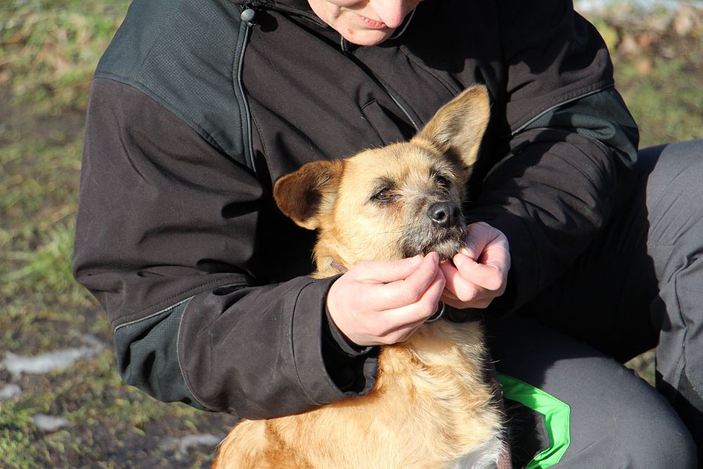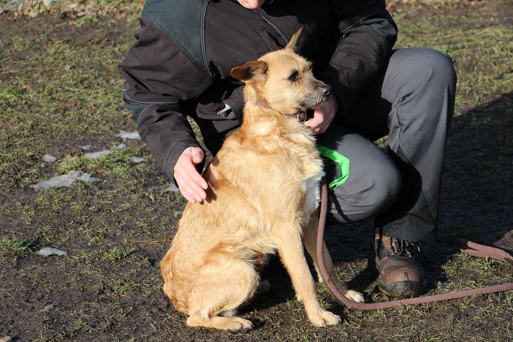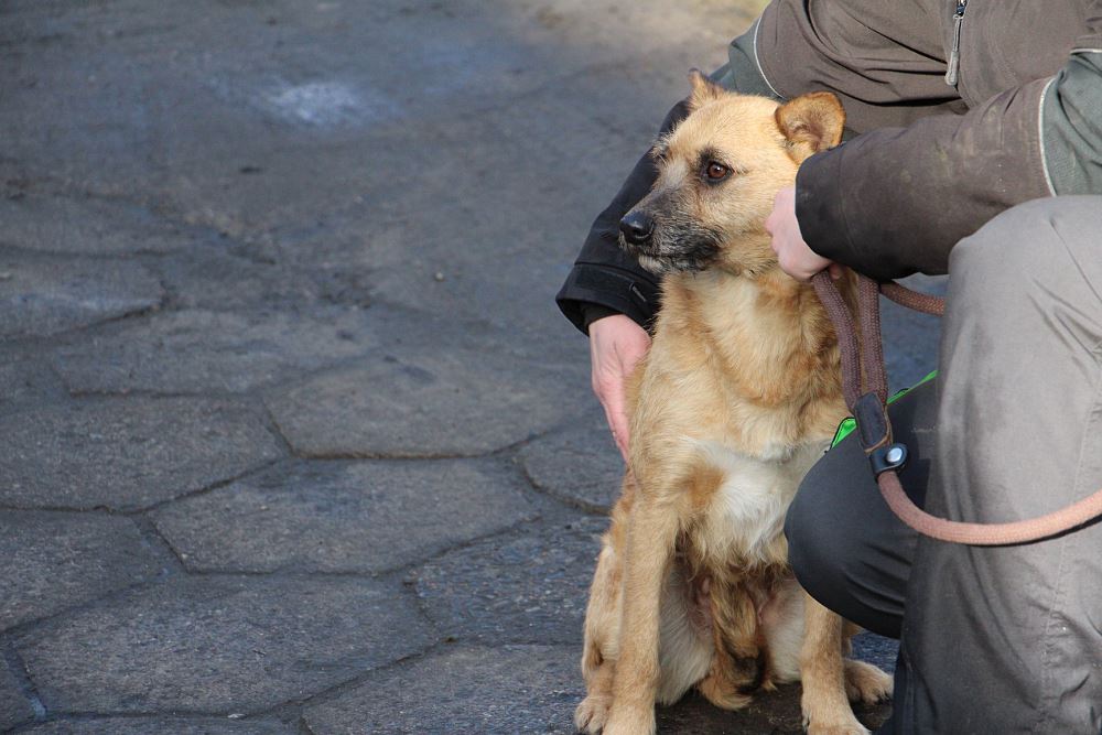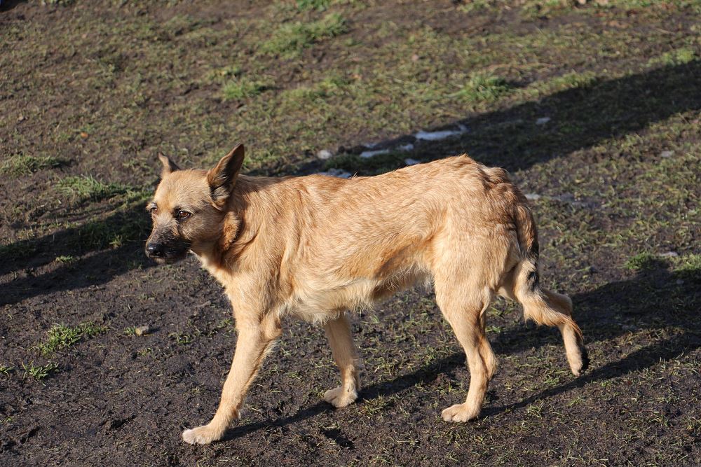 Suczka około 3 letnia odłowiona 15 lutego w gminie Czarnków - miała swoją panią, ale ta mieszka w bloku a ona została na gospodarstwie i lekko zdziczała. Ma około 3 lat, szybko przekonuje się do człowieka.