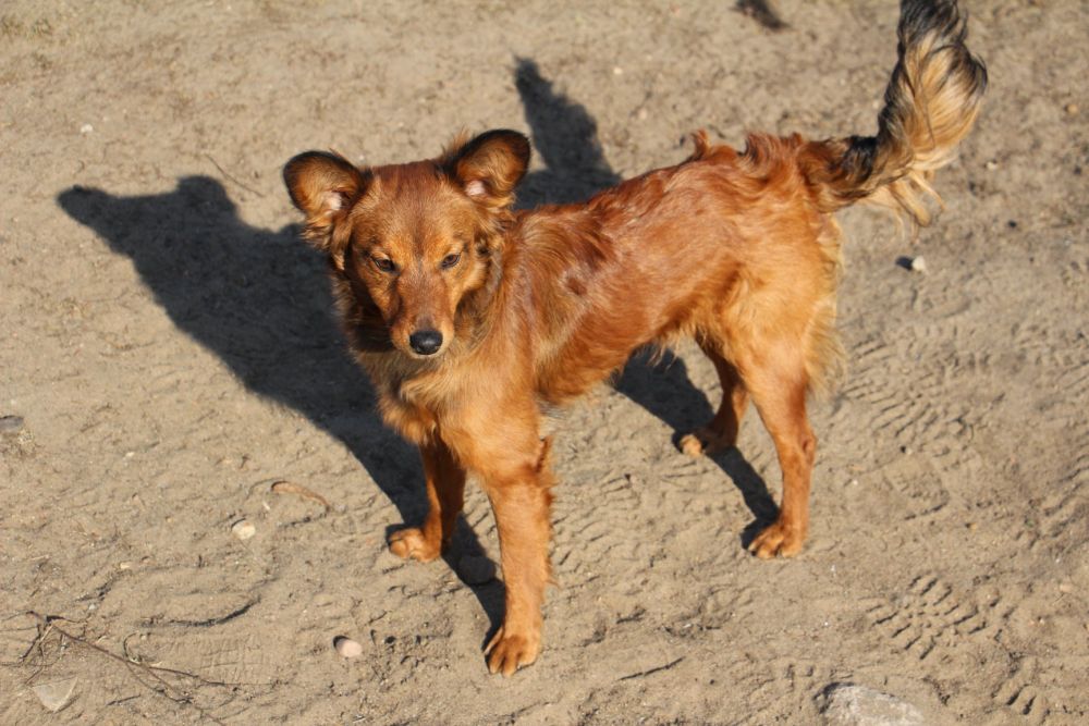 Pies około roczny przywieziony do nas 1 marca z Rogoźna, przemarznięty- jednostronny wnęter. Domowy, umie chodzić na smyczy. Ma ok.1 roku. Lubi szczekać, domaga się uwagi człowieka.