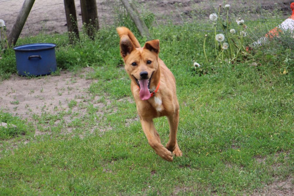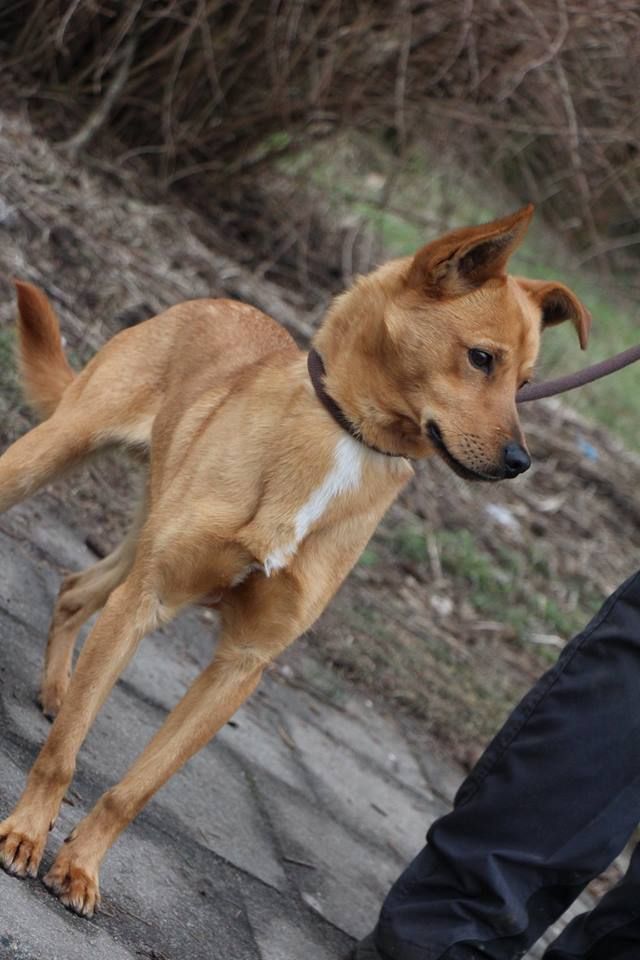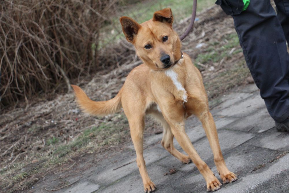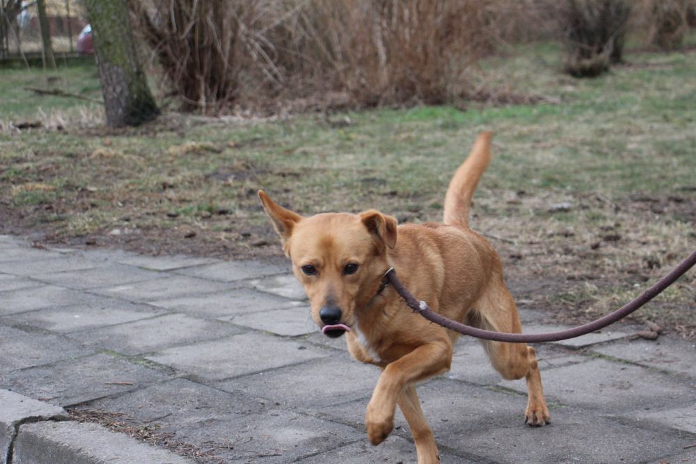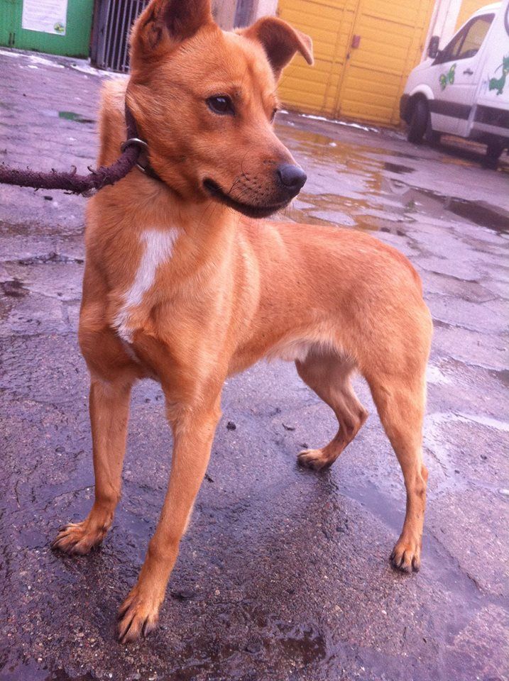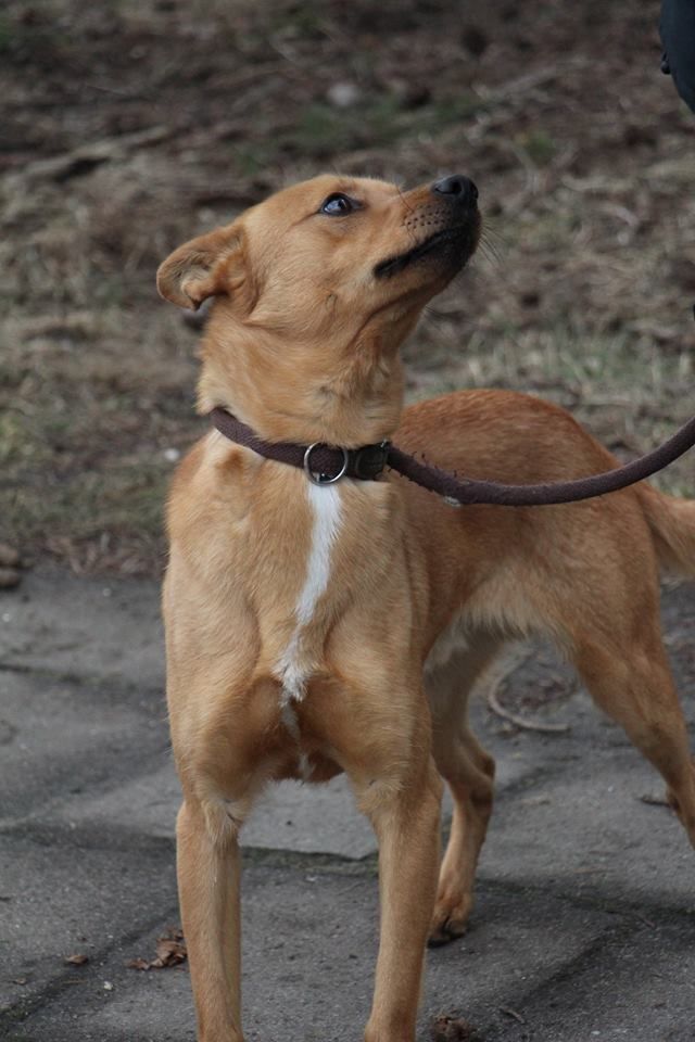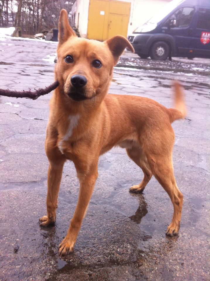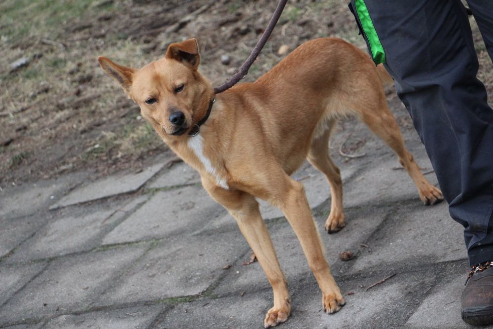 Pies przywieziony do schroniska 7 marca 2018 z Obornik z ul. Armii Krajowej. Ma max 2-3 lata. Wesoły, biega za aportem, chodzi na smyczy, pełen energii.