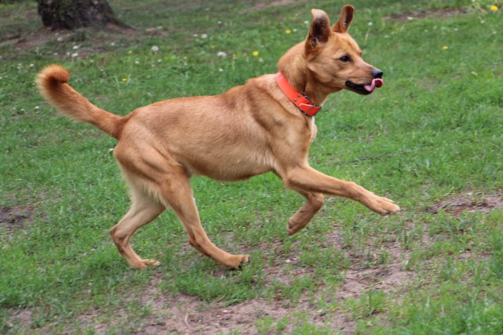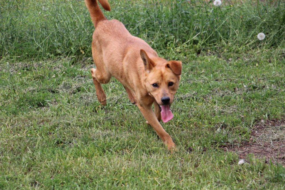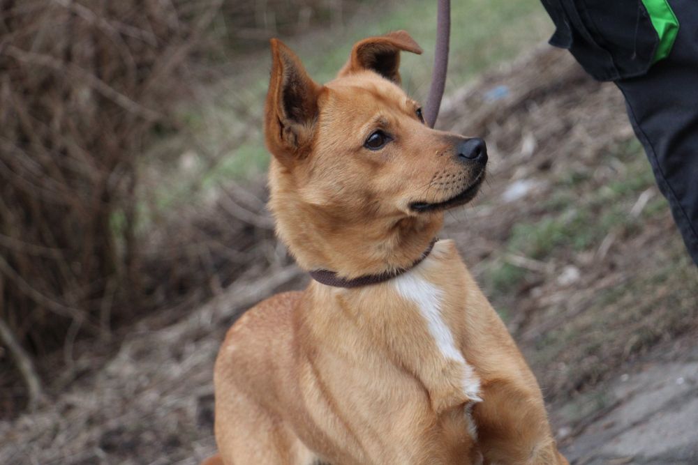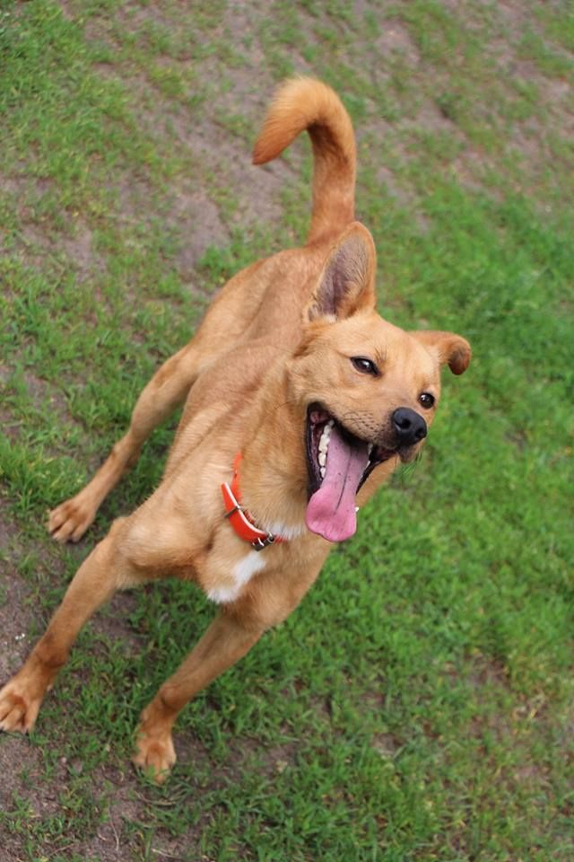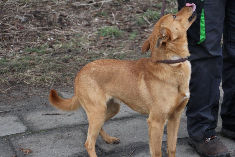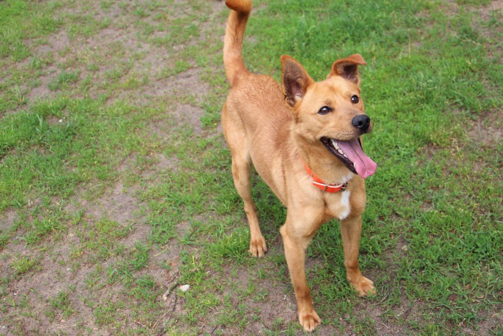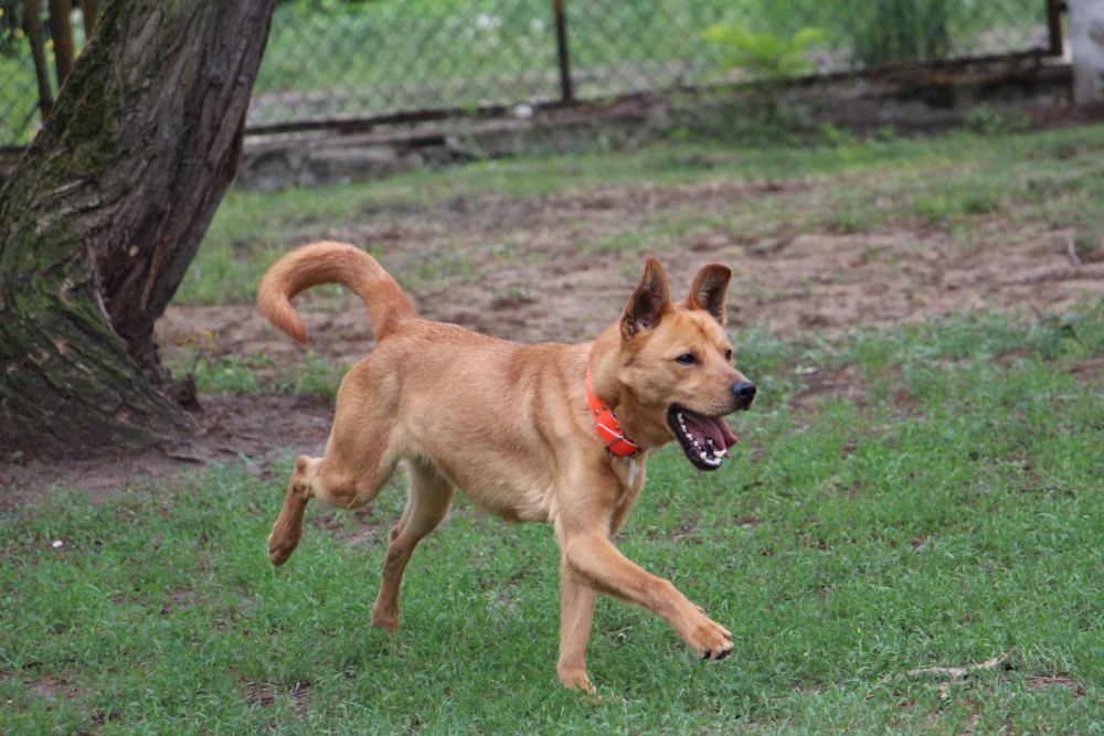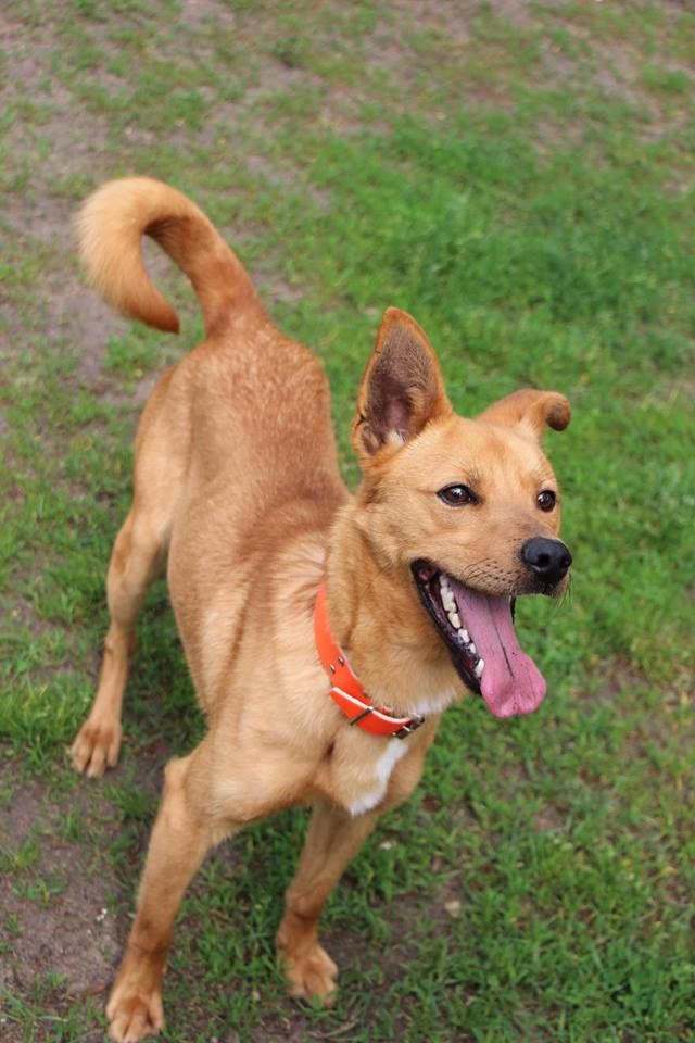 Pies przywieziony do schroniska 7 marca 2018 z Obornik z ul. Armii Krajowej. Ma max 2-3 lata. Wesoły, biega za aportem, chodzi na smyczy, pełen energii.