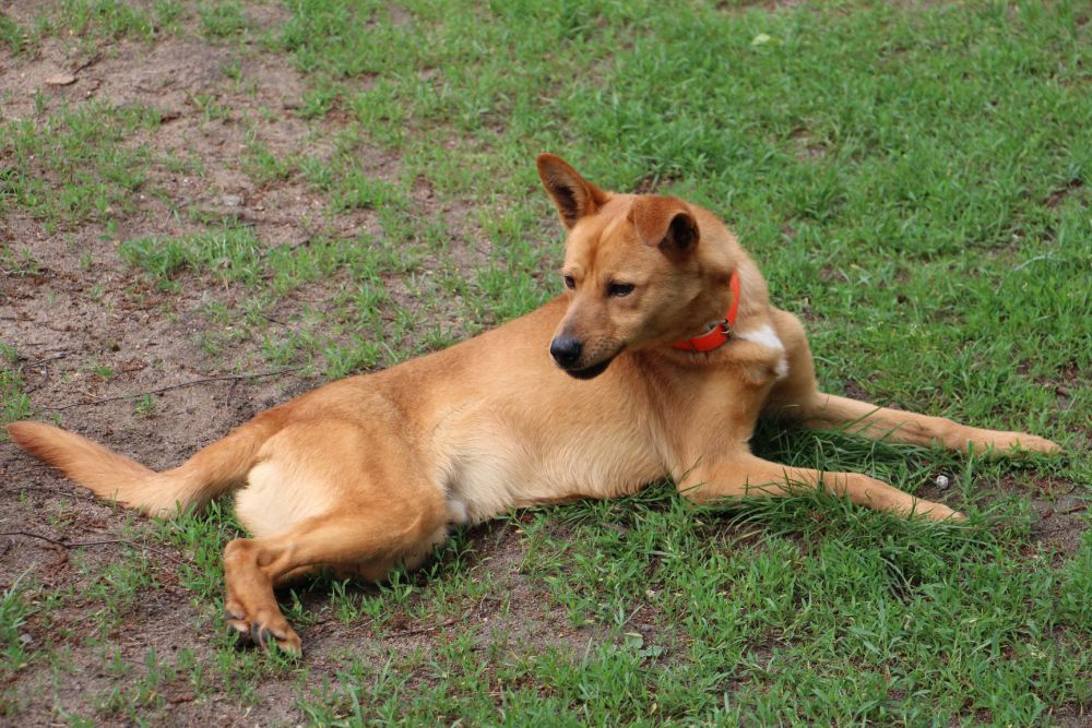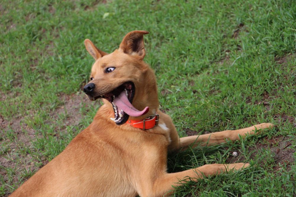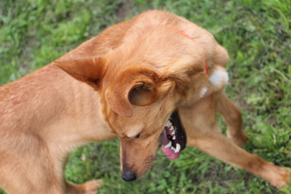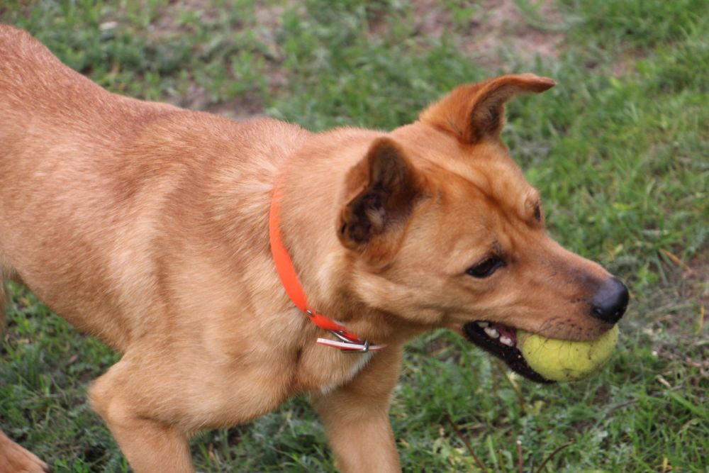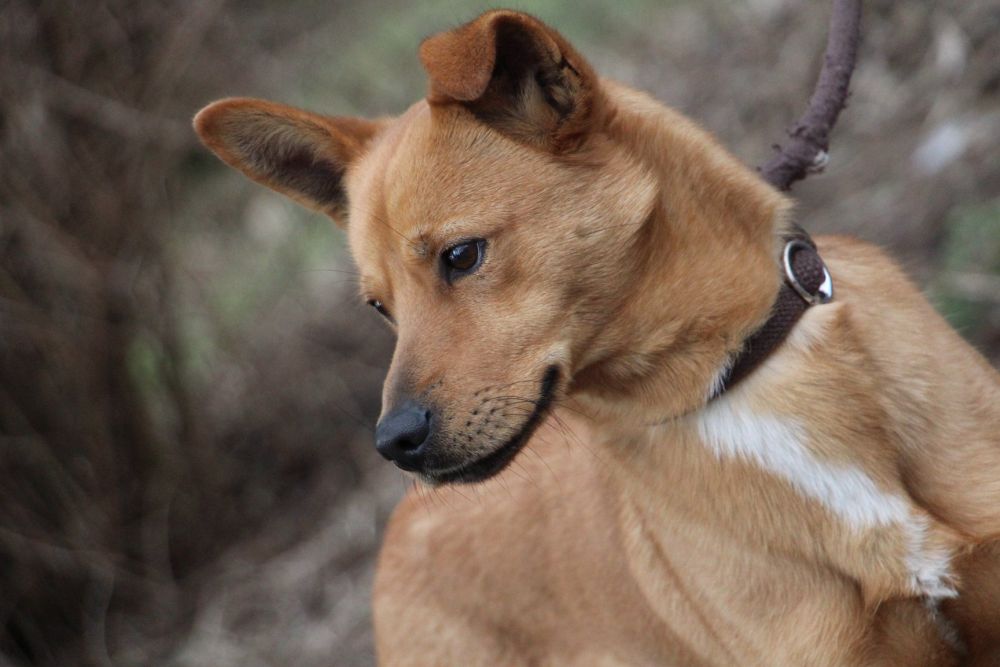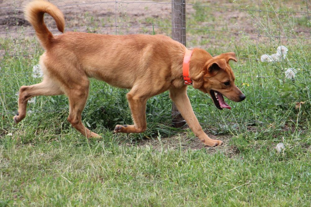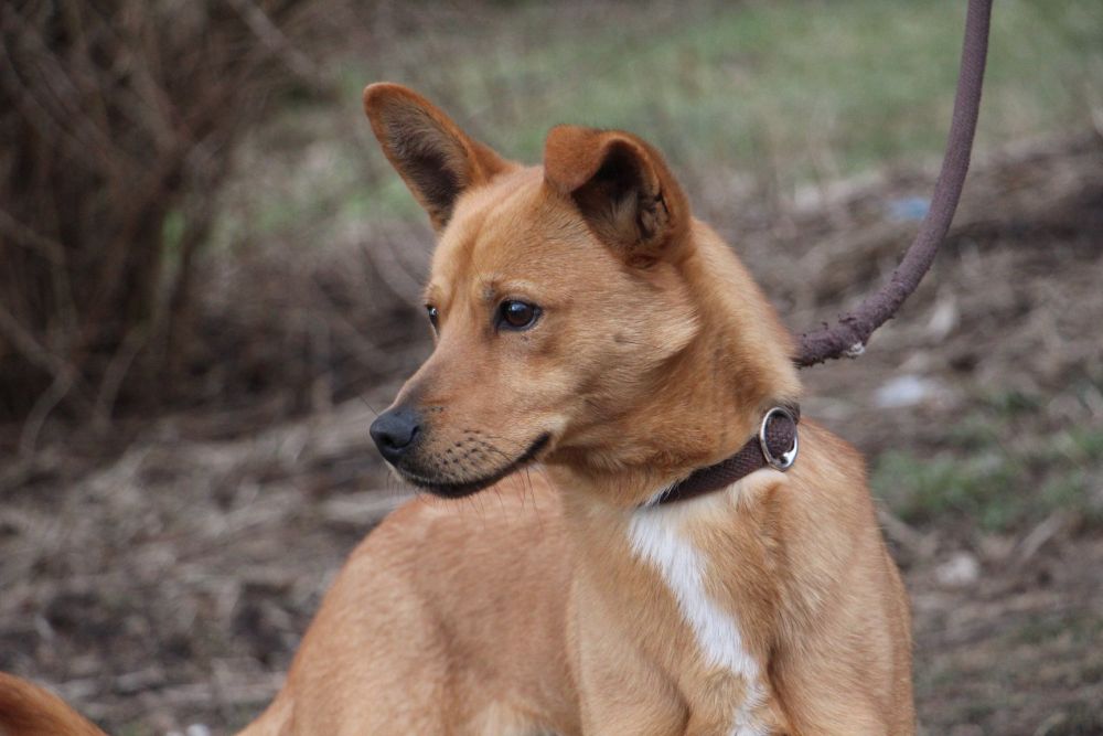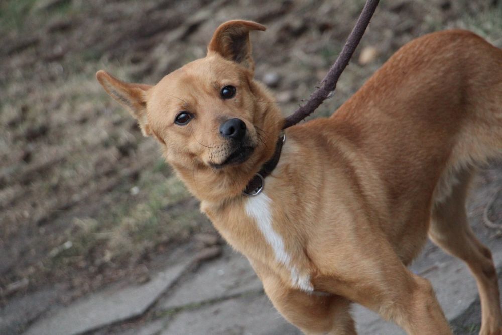 Pies przywieziony do schroniska 7 marca 2018 z Obornik z ul. Armii Krajowej. Ma max 2-3 lata. Wesoły, biega za aportem, chodzi na smyczy, pełen energii.