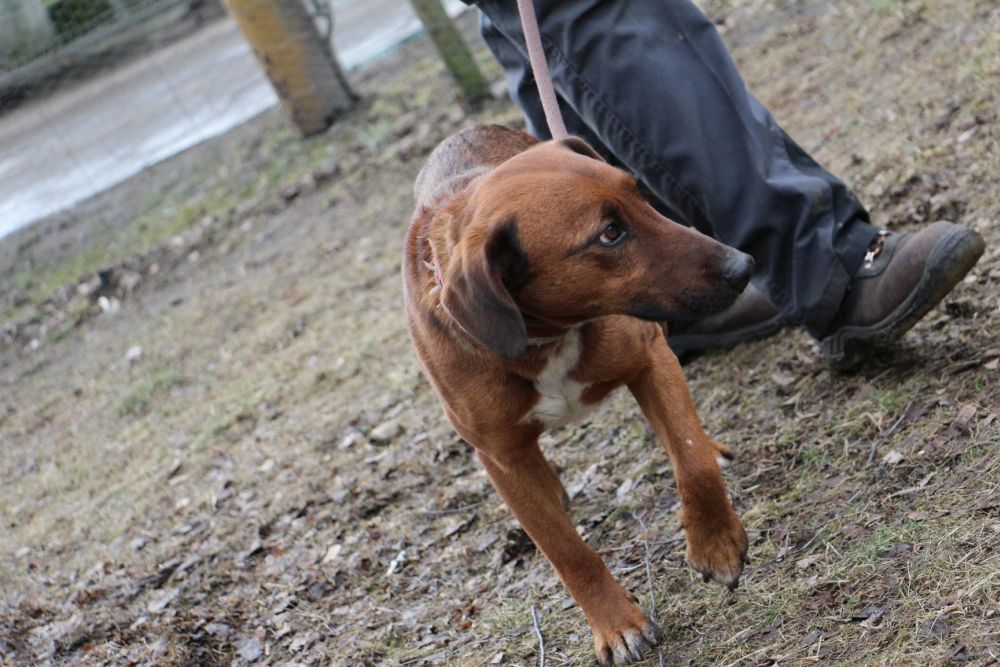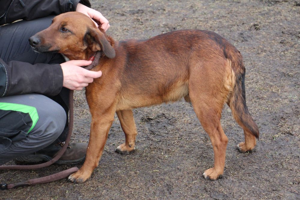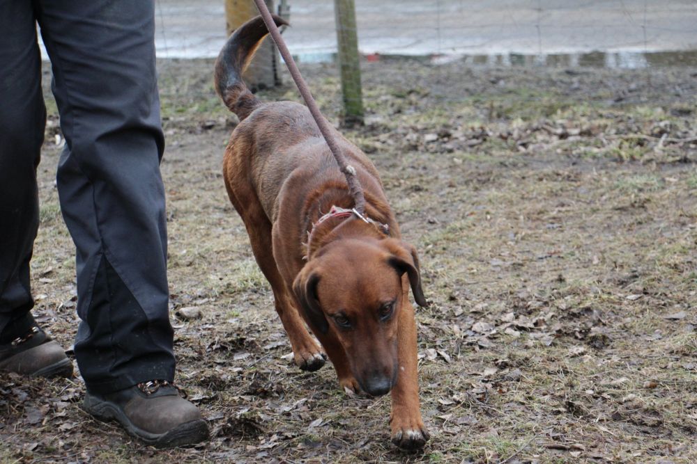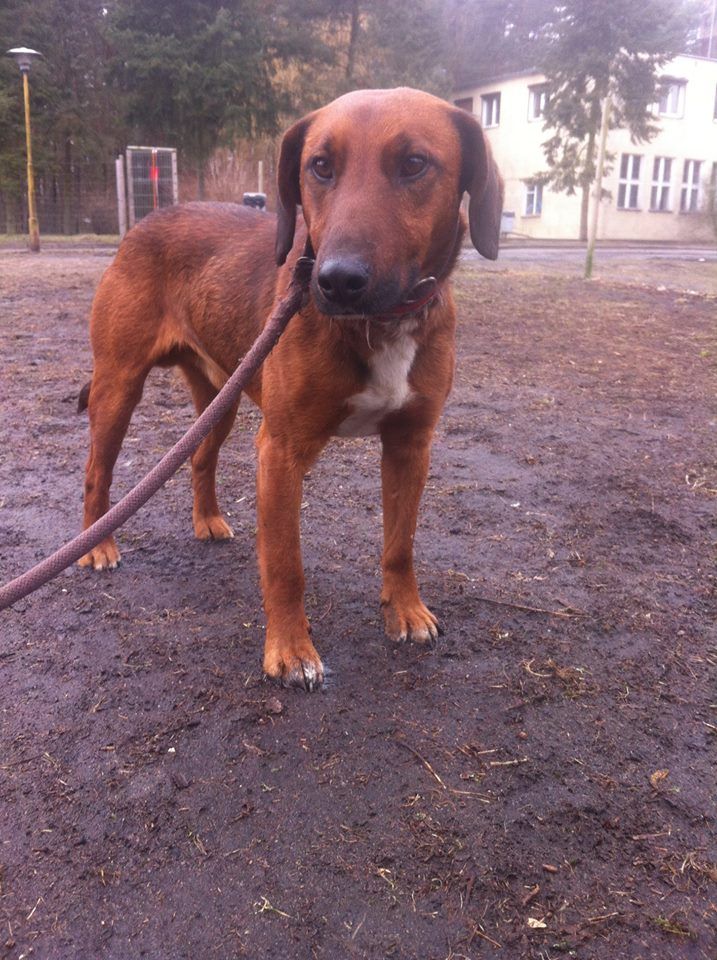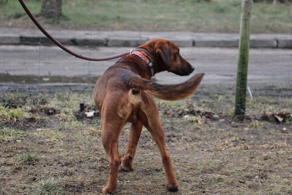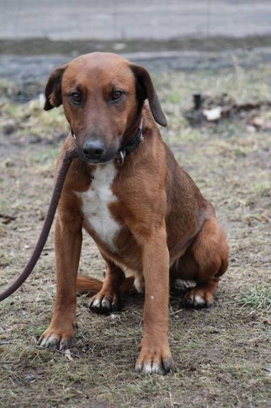 Pies przywieziony z Prusiec, gmina Rogoźno w czwartek 8 marca. Ładnie chodzi na smyczy, Przyszedł na gospodarstwo ok tygodnia.