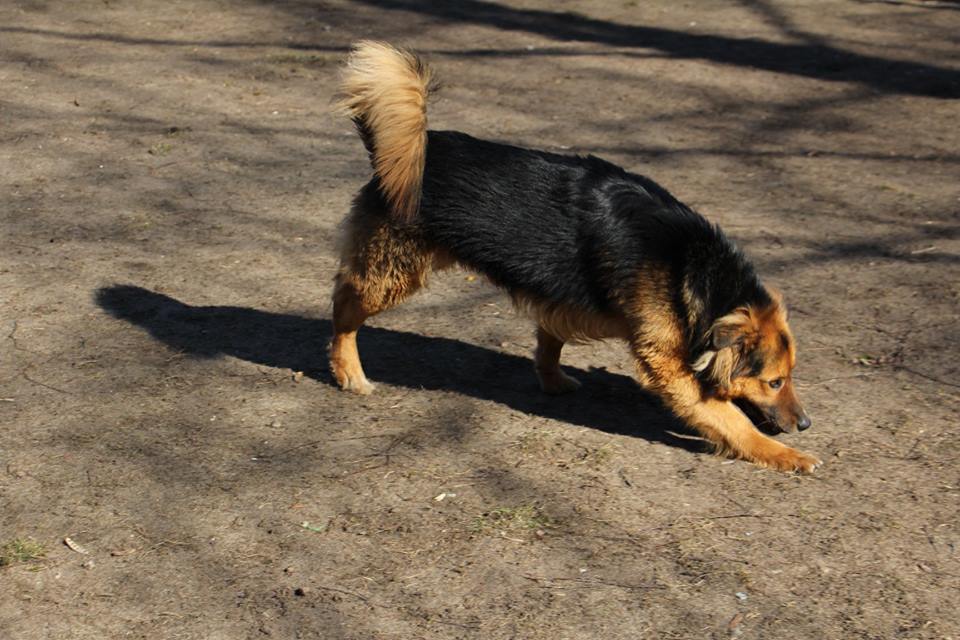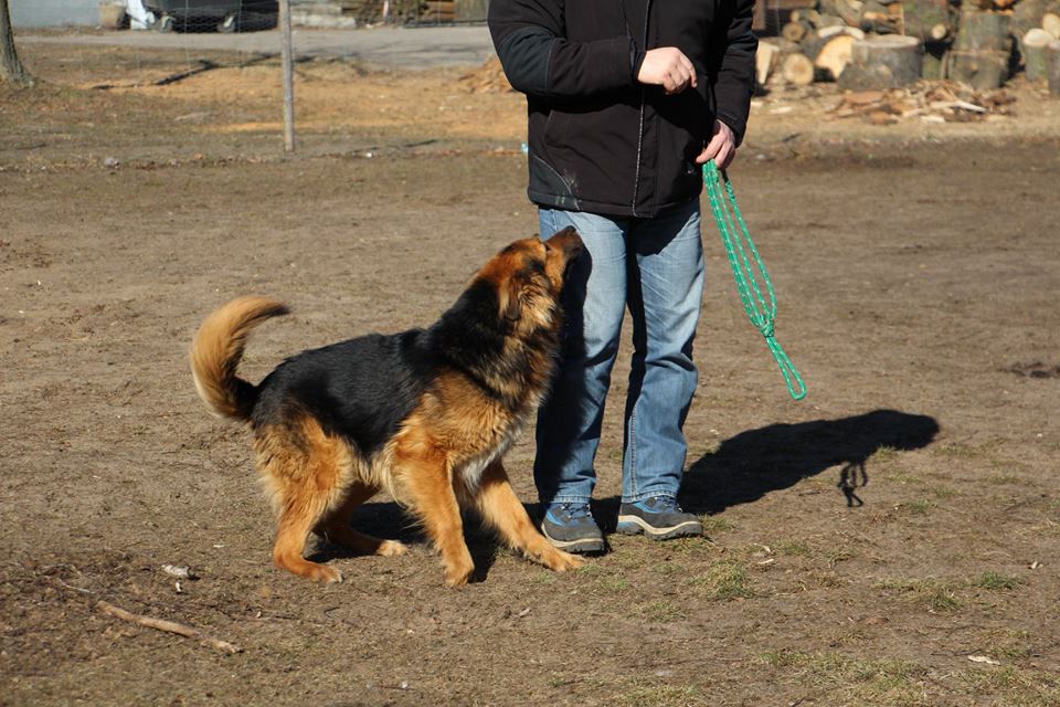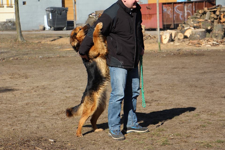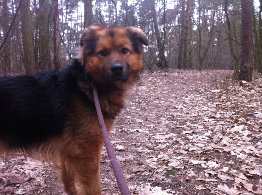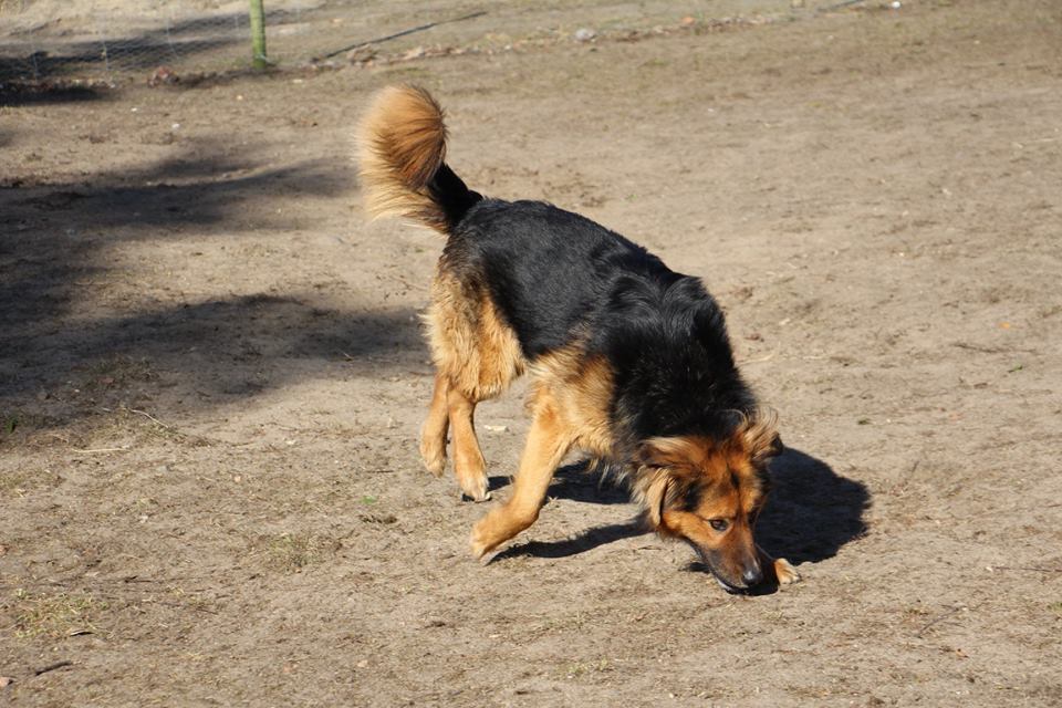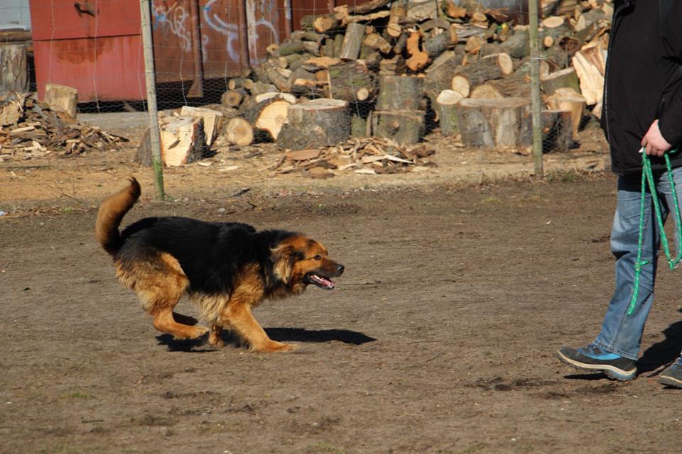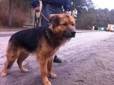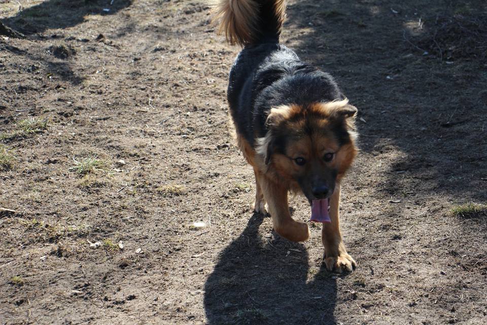 Pies przywieziony 16 marca 2018 z Grudnej gmina Rogoźno. Kadr ma ok. 2 lat. Potrafi chodzić na smyczy choć prawdopodobnie jest psem podwórkowym, nowe rzeczy wzbudzają początkowo niepokój.
