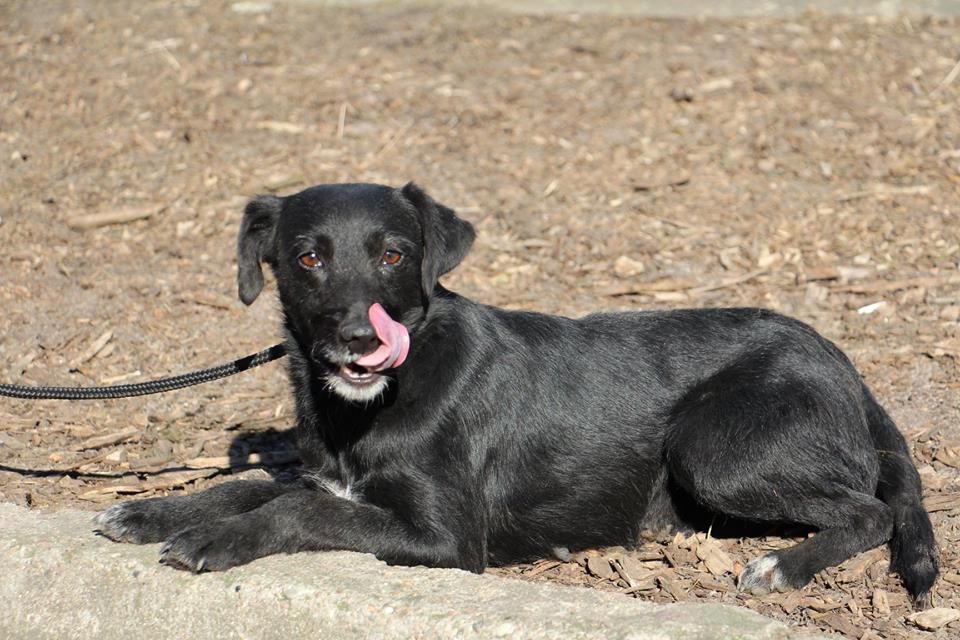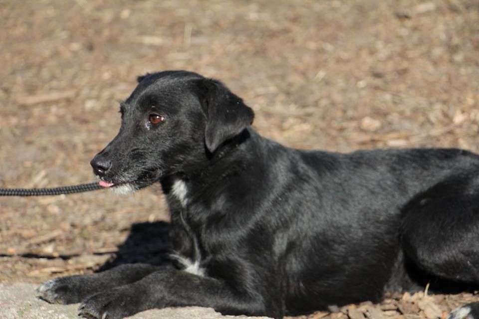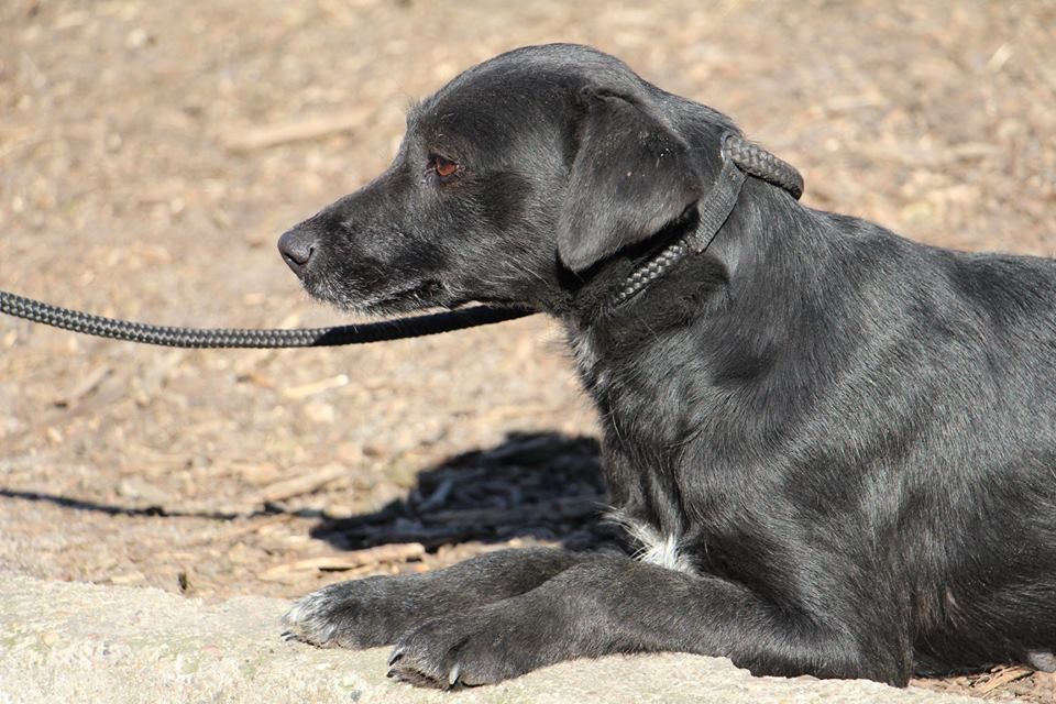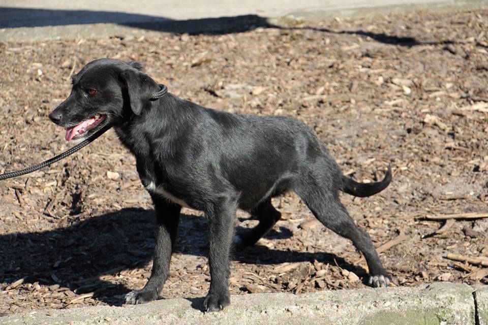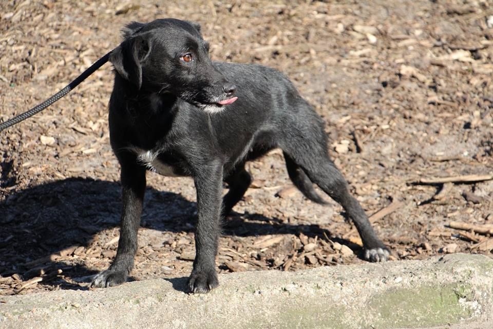 Suczka ok 4-5 lat, mieszaniec przywieziona z gminy Grodzisk Wielkopolski 15 marca. Nie zna chodzenia na smyczy, mocno się stresuje na lince prowadzona. Łagodna dla ludzi - związana z Dublem- może być jej synem