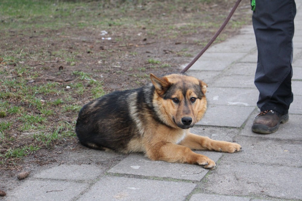 Pies przywieziony 3 kwietnia z Lipy w gminie Ryczywół. Ma około roku, wygląda jak miniaturka owczarka, jest bardzo zadbany.