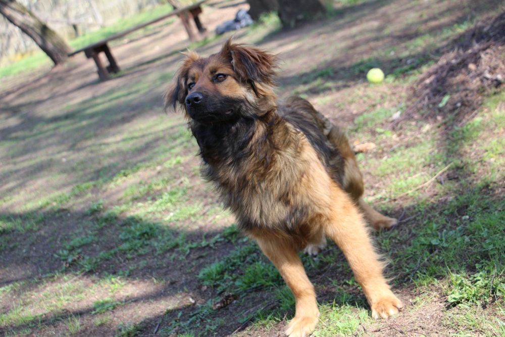 Suczka przywieziona z gminy Czarnków 6 kwietnia. Ma około 8 miesięcy, jest bardzo przyjacielska dla ludzi i psów. Jest pojętna i bardzo miła.