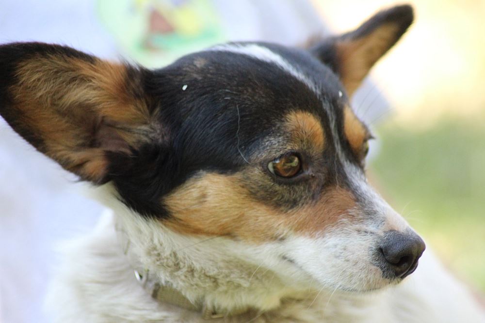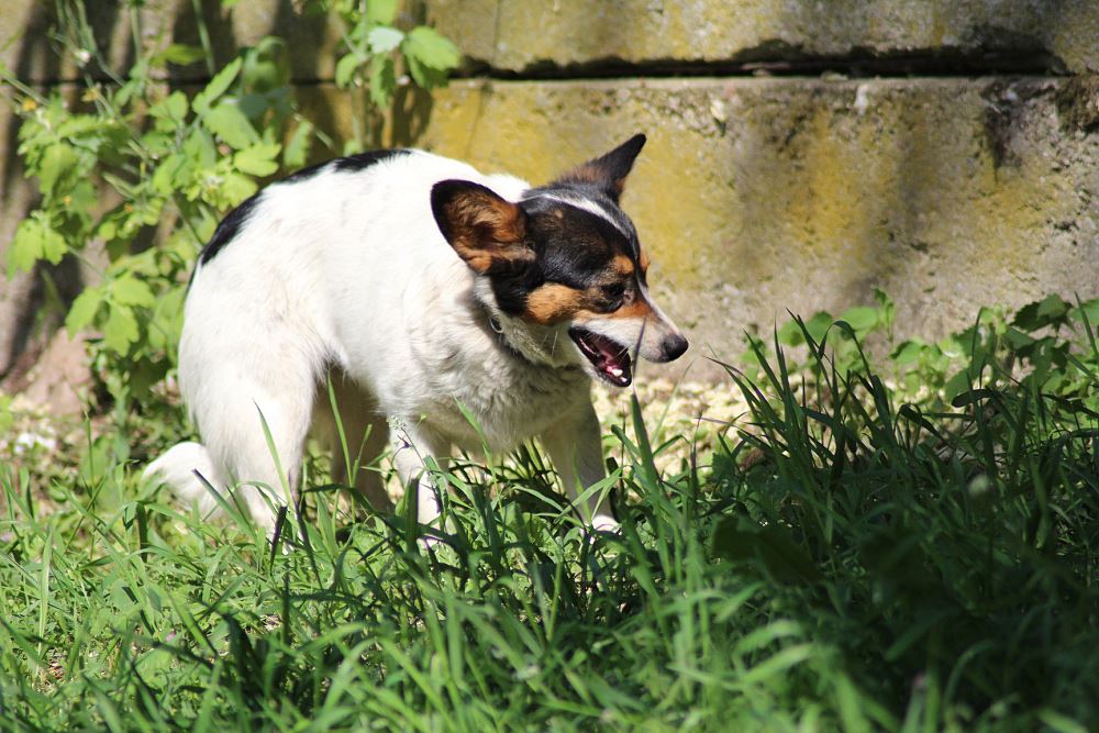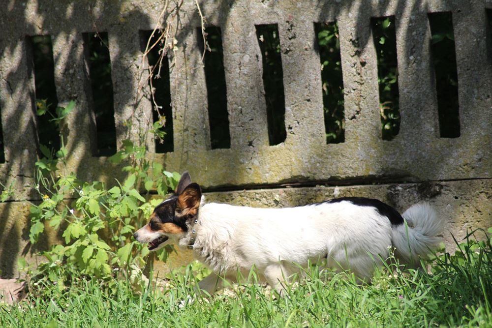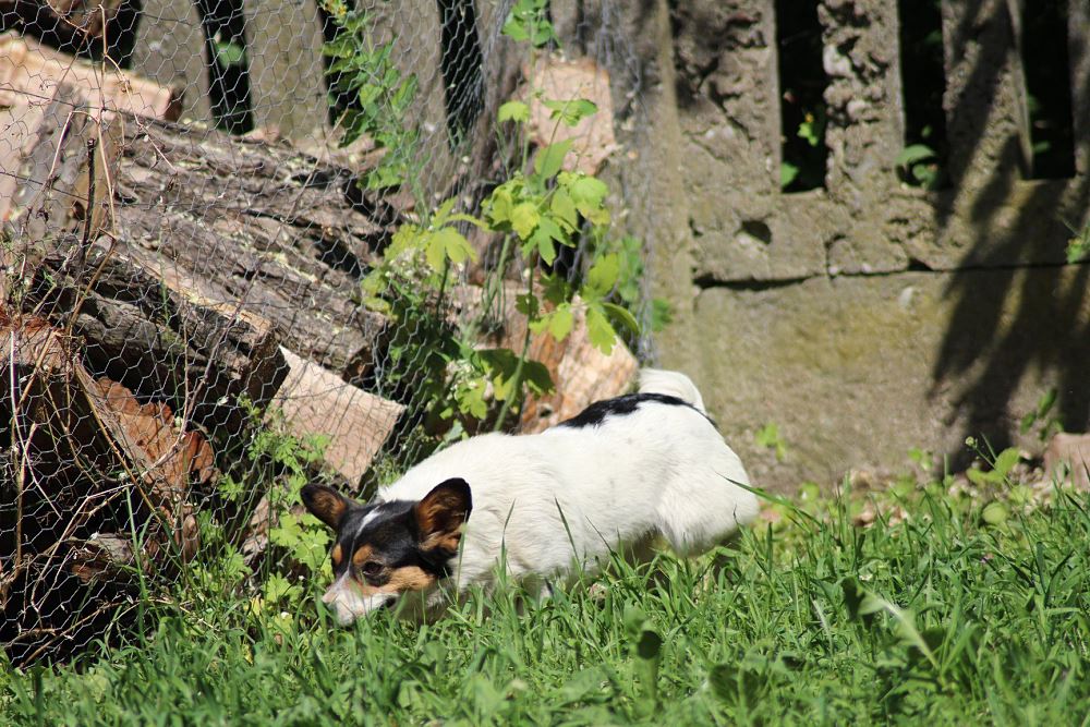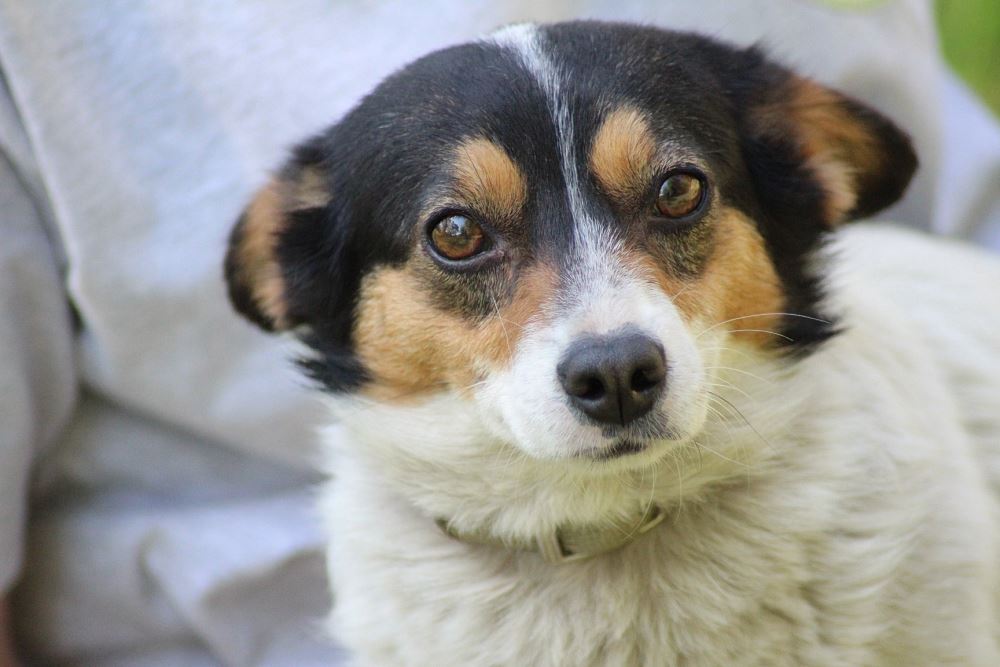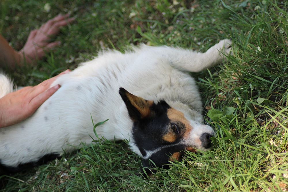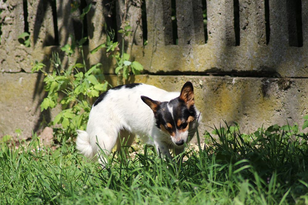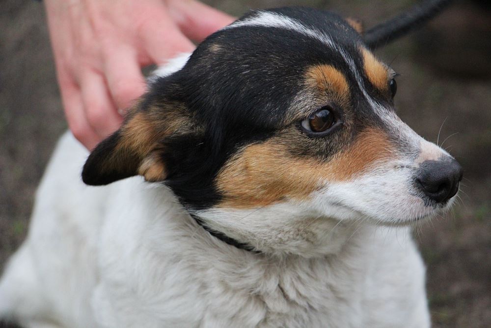 Suczka odłowiona 22 kwietnia na ul. Tartacznej w Obornikach- około dobrego tygodnia tam przebywała. Jest młoda- ok.1,5 roku. Garnie się na kolana do głaskania, choć nowym osobom nie ufa. Uczy się chodzić na smyczy.