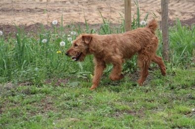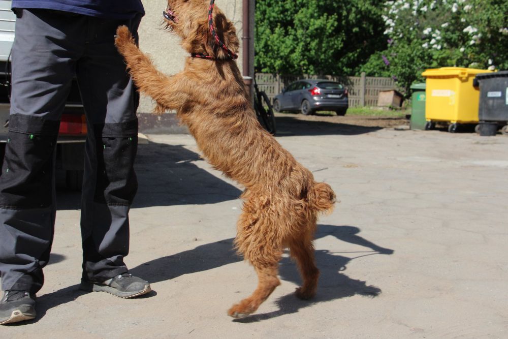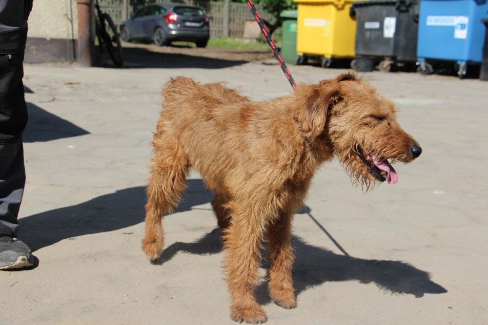 Pies przywieziony z gminy Kamieniec 9 maja, młody - około roczny, kontaktowy, pełen energii, chodzi na smyczy.