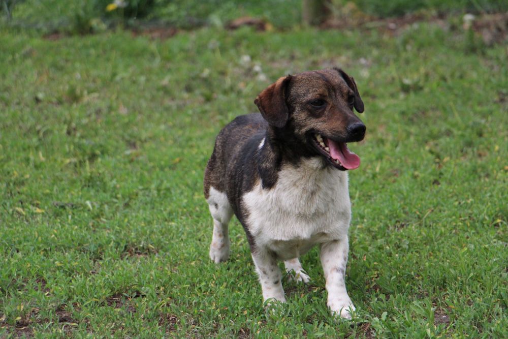 Pies przywieziony z gminy Kamieniec 9 maja. Pies ma około roku, jest spokojny, łagodny, chodzi jak cień przy nodze człowieka.
