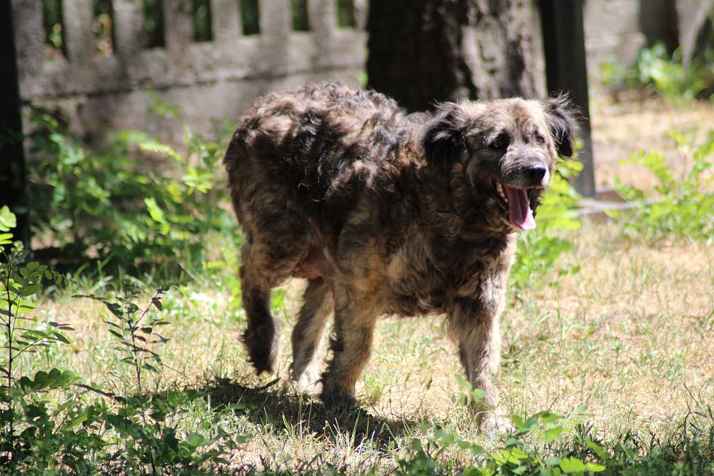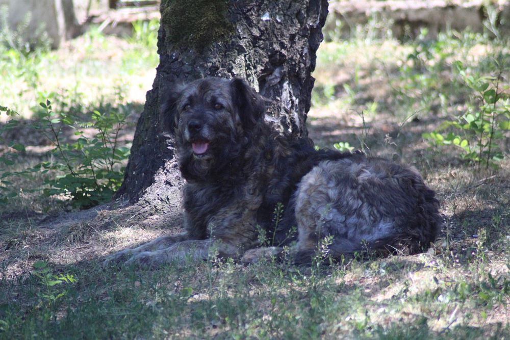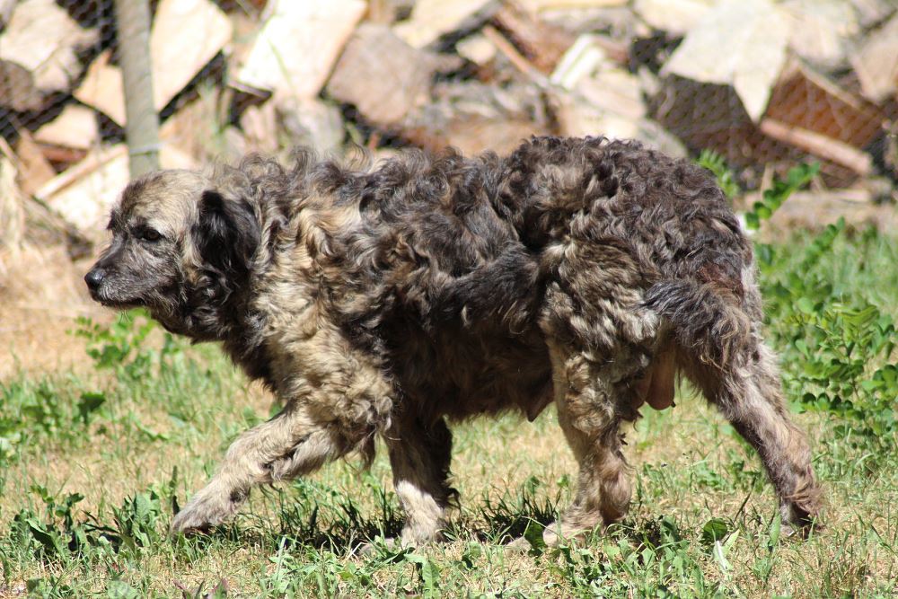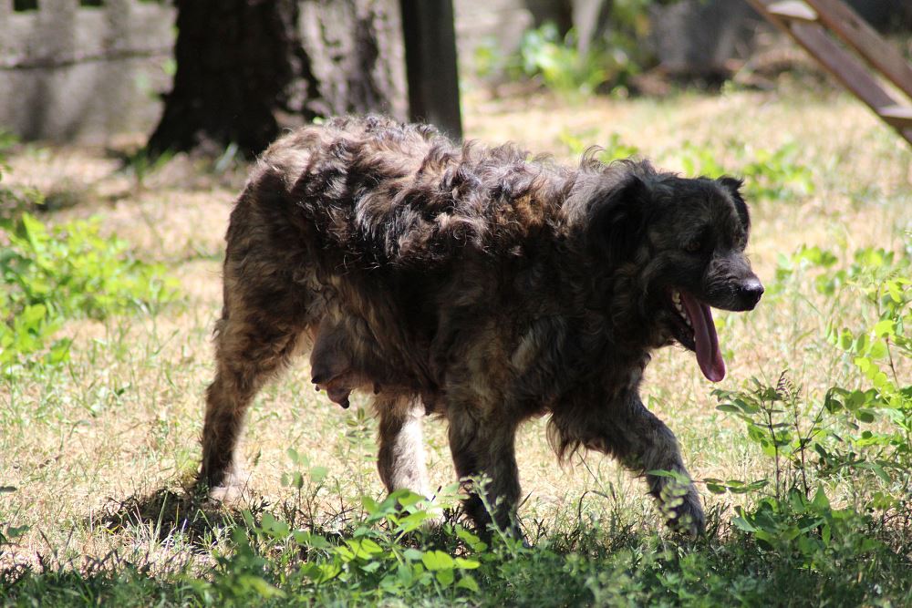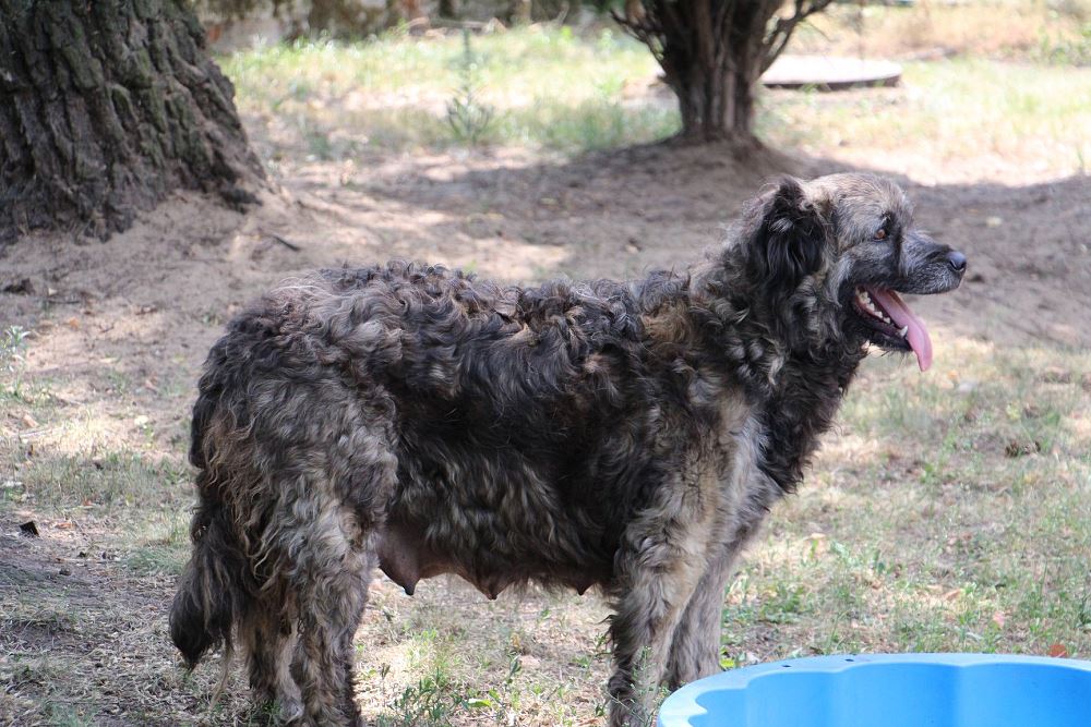 Suczka przywieziona z gminy Czarnków 1 czerwca 2018 r. Jest po odłączeniu szczeniąt, dostaje leki wstrzymujące laktację. Uczymy ją jedzenia psiego pokarmu a nie ziarna zboża, obcinamy jej dredy ze spodni a przede wszystkim uczymy zaufania do LUDZI..... ma około 10 lat.