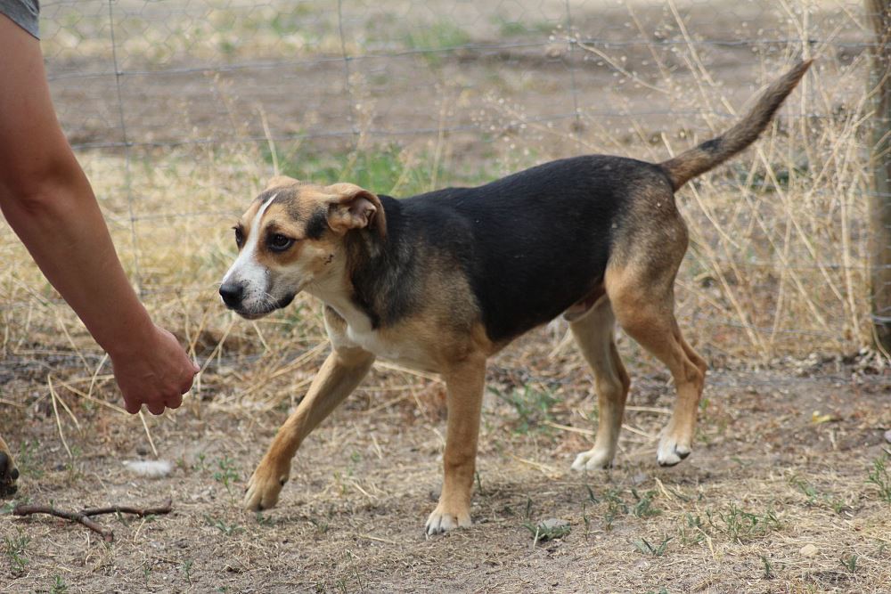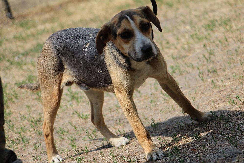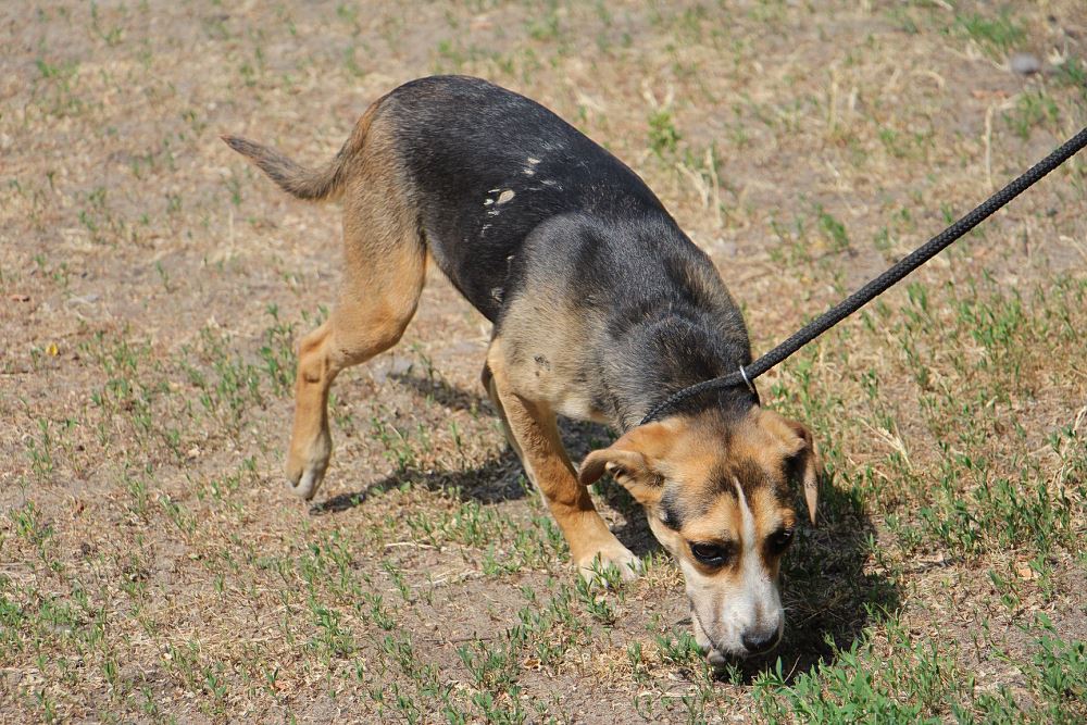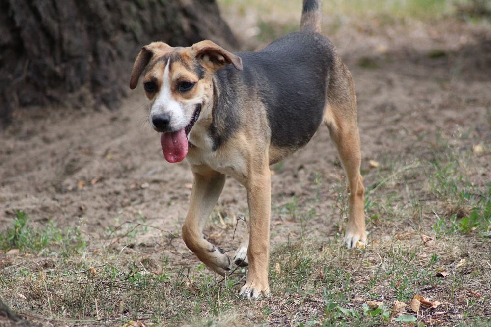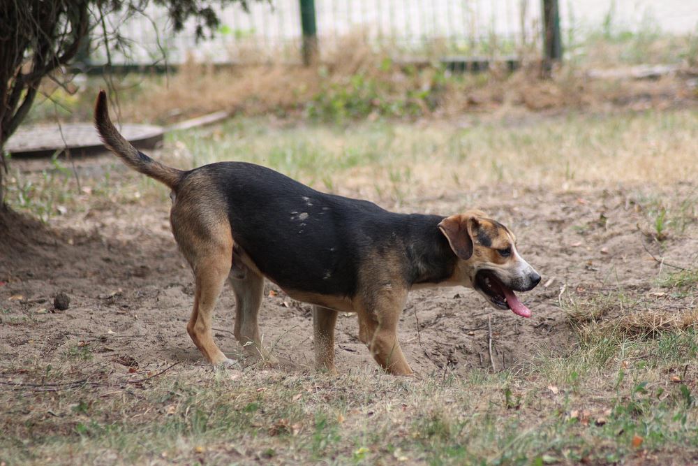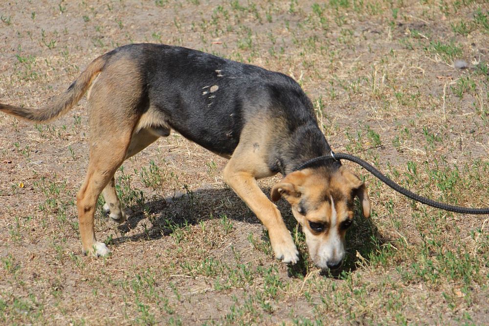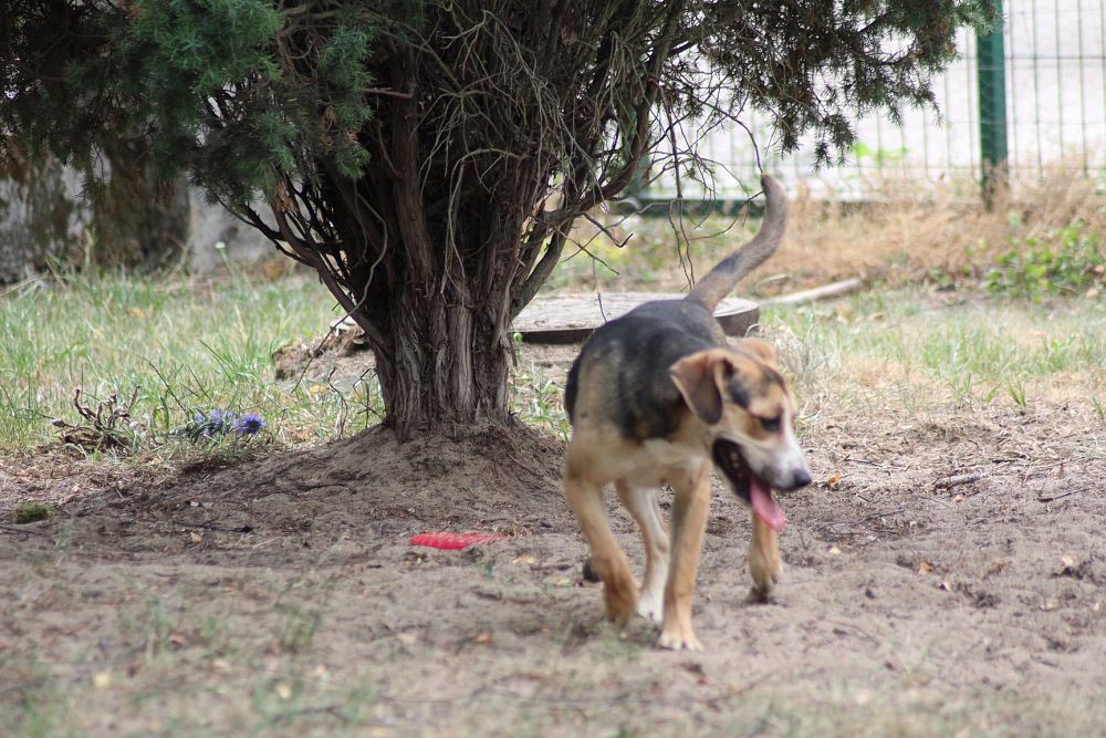 Pies przywieziony 5 czerwca 2018 r. z gminy Murowana Goślina. Ma około roku, nie potrafił chodzić na smyczy, ma poklejoną sierść na boku ale jest w dobrej kondycji. Jest przygotowywany do adopcji- super się potrafi bawić z innymi psami