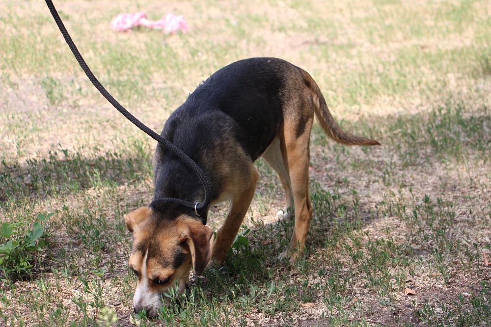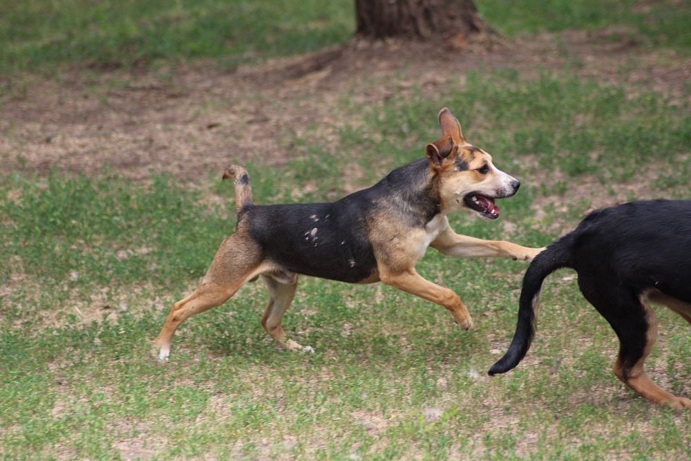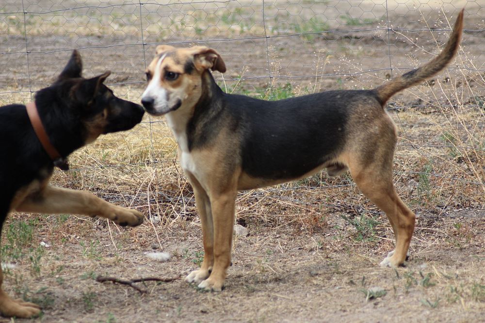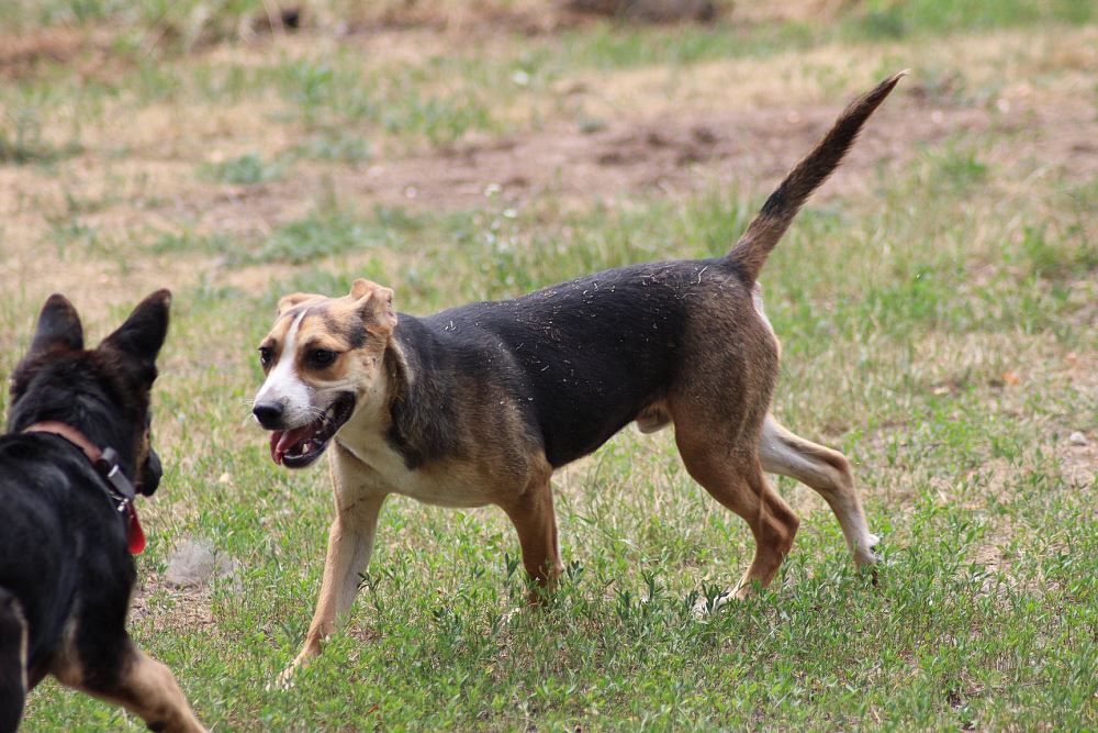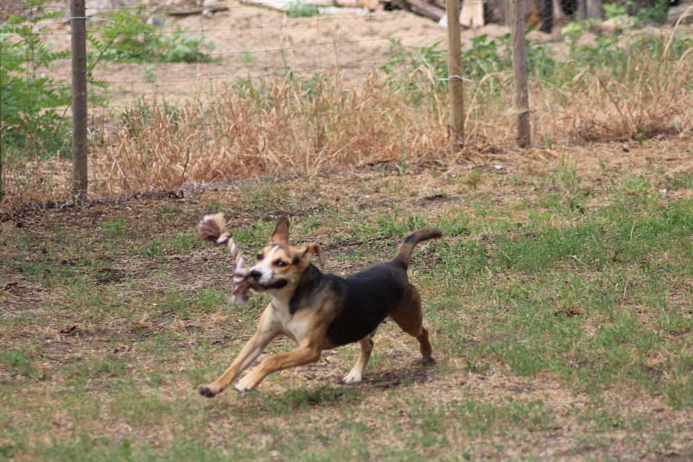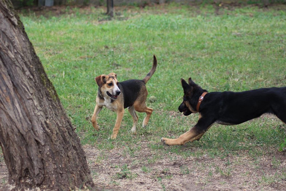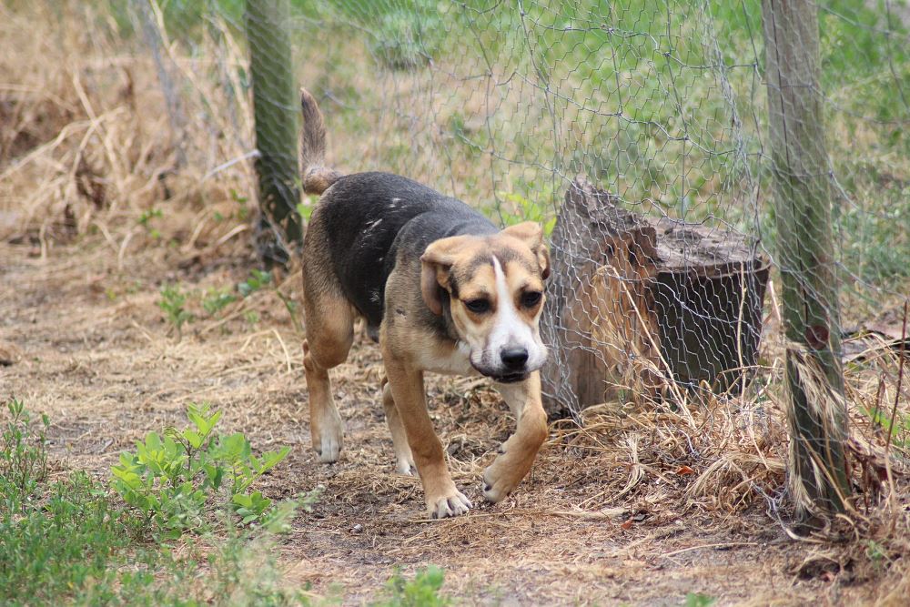 Pies przywieziony 5 czerwca 2018 r. z gminy Murowana Goślina. Ma około roku, nie potrafił chodzić na smyczy, ma poklejoną sierść na boku ale jest w dobrej kondycji. Jest przygotowywany do adopcji- super się potrafi bawić z innymi psami