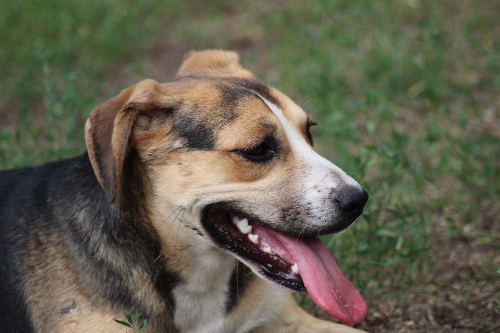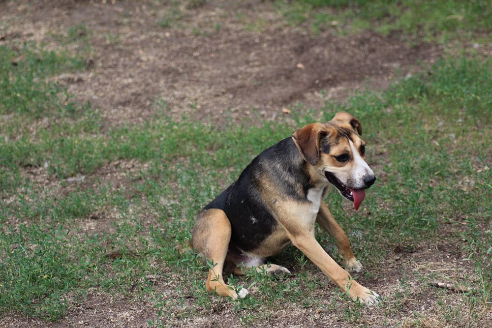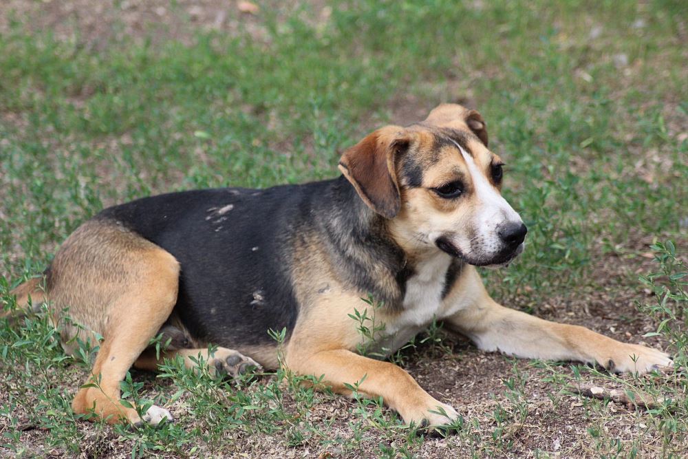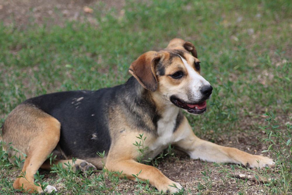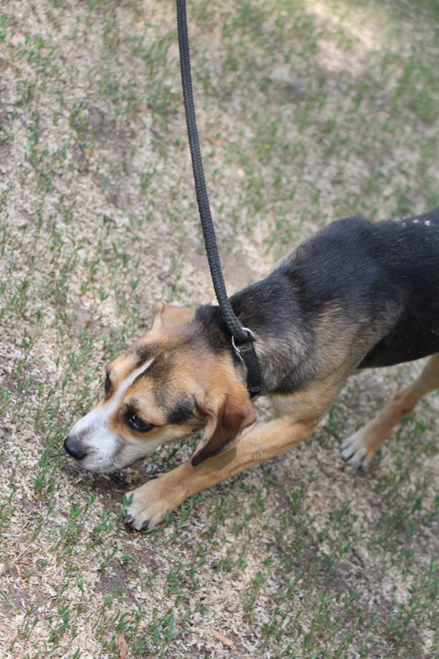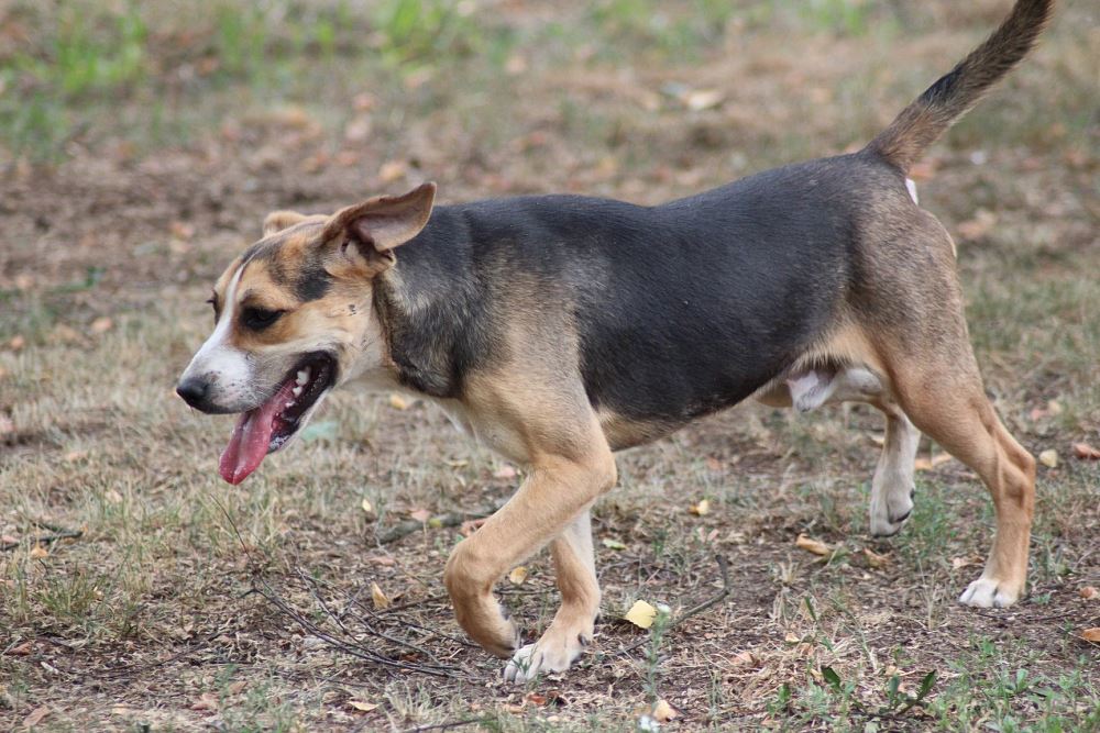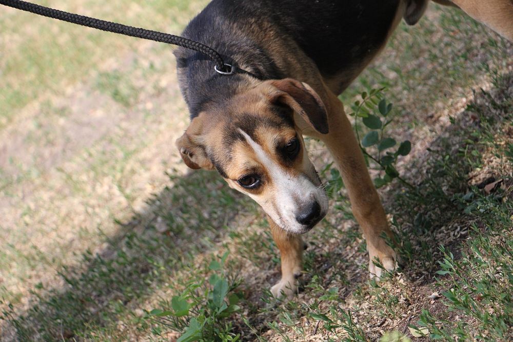 Pies przywieziony 5 czerwca 2018 r. z gminy Murowana Goślina. Ma około roku, nie potrafił chodzić na smyczy, ma poklejoną sierść na boku ale jest w dobrej kondycji. Jest przygotowywany do adopcji- super się potrafi bawić z innymi psami