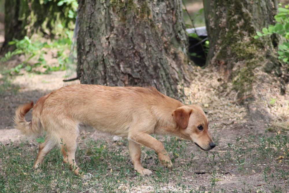 Pies przywieziony z gminy Murowana Goślina 20 czerwca 2018 r. ze swoim bratem Koralem. Ma około 1 roku, jest bardzo przyjacielski- nie umieją jeszcze chodzić na smyczy ale to kwestia czasu.