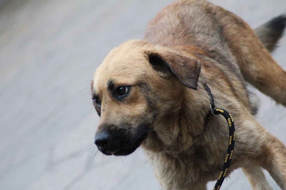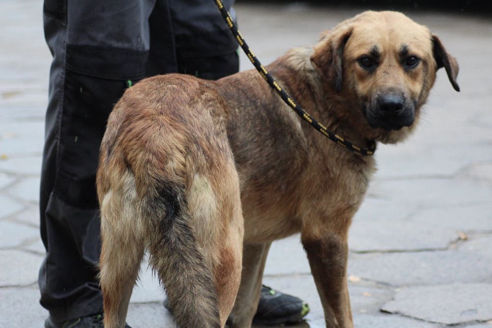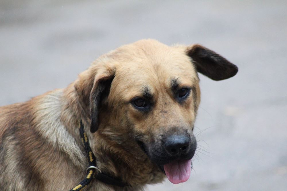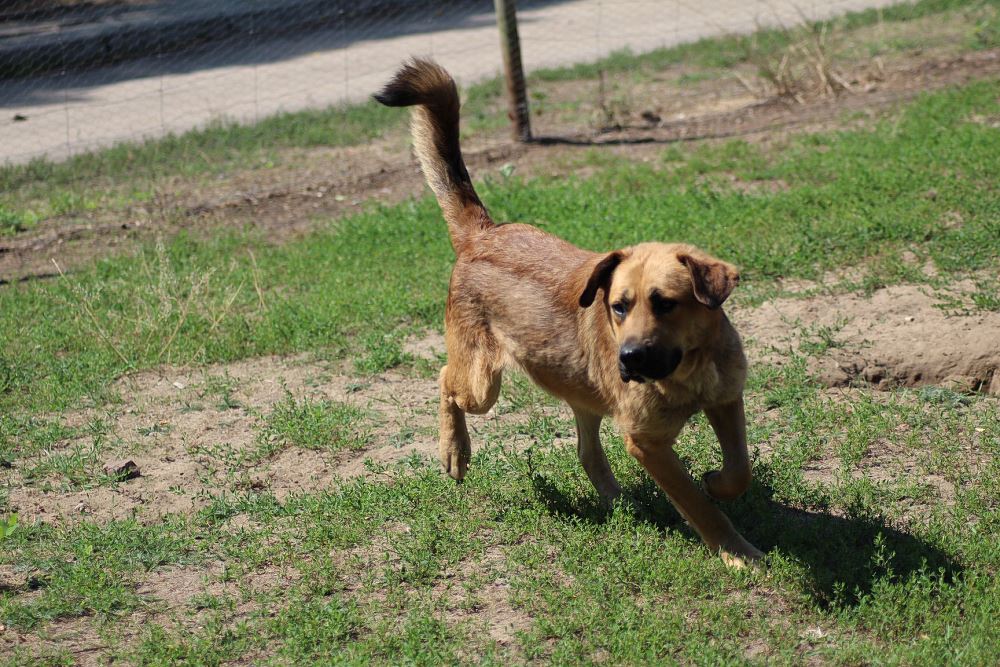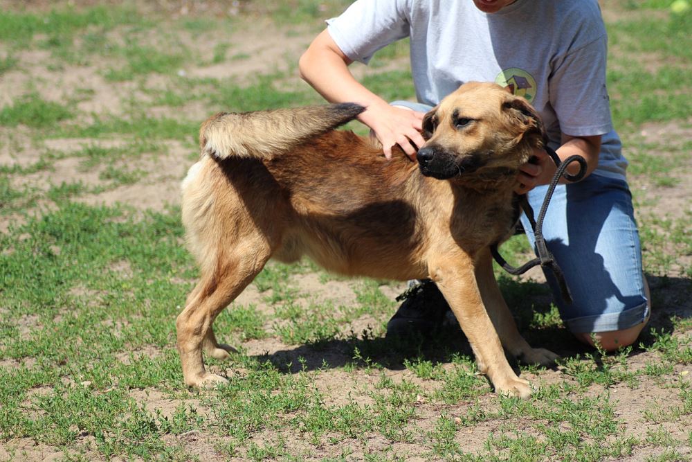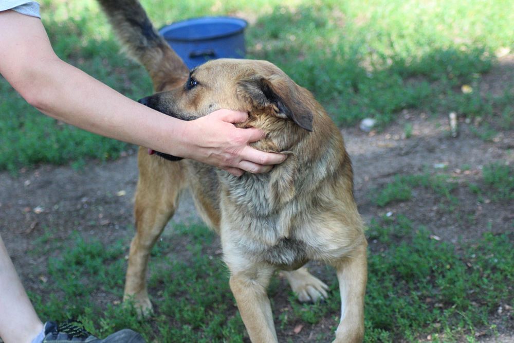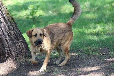 Pies, mieszaniec około 2 letni odłowiony 10 lipca 2018 w Jędrzejewie w gminie Czarnków. Jest zadbany, ma starą bliznę na karku.