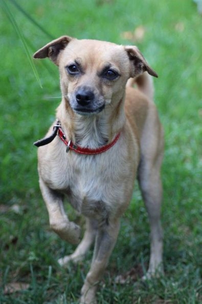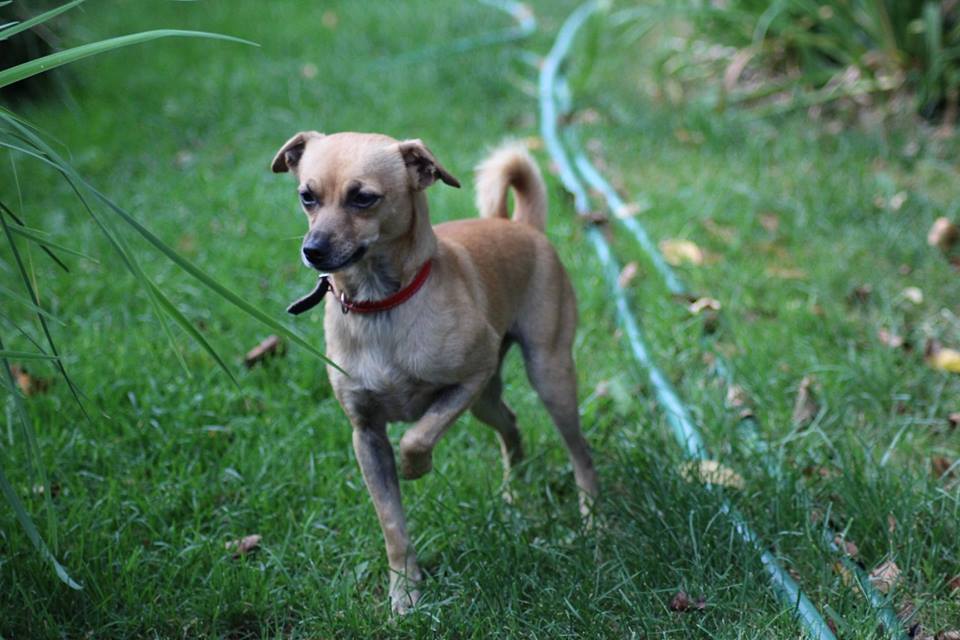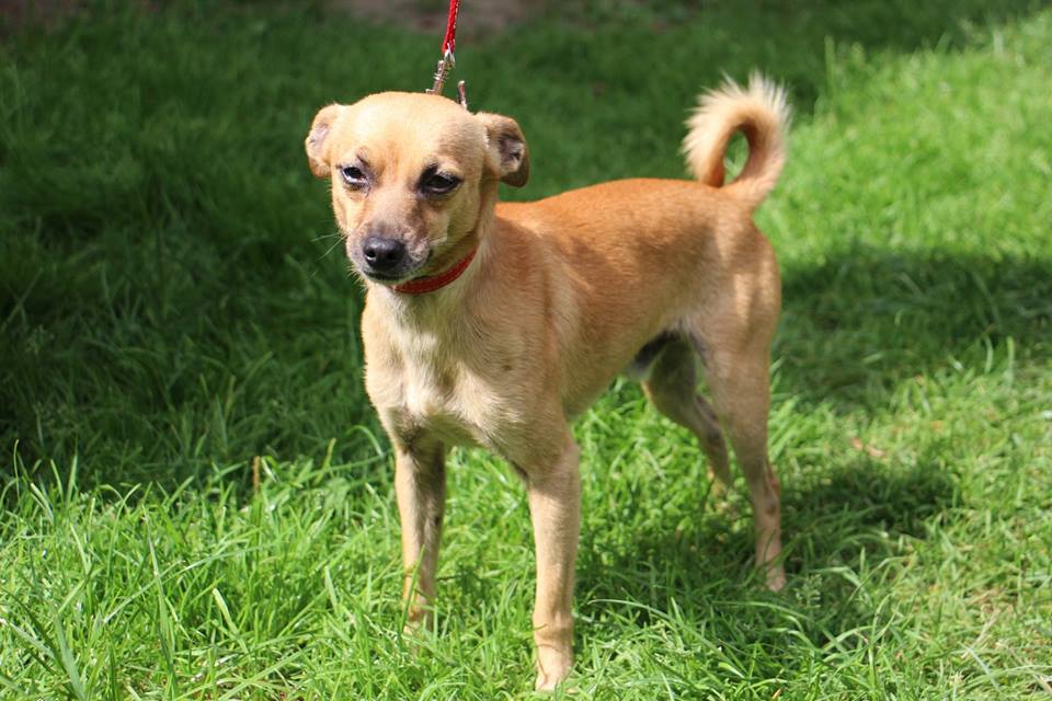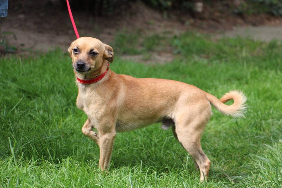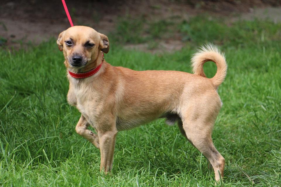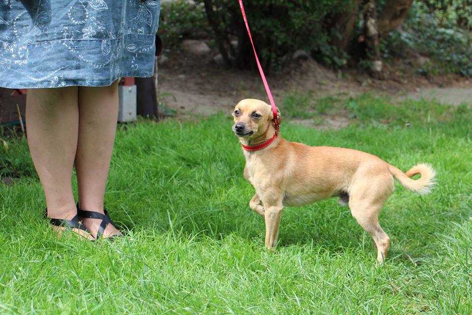 Pies przywieziony 17 lipca 2018 z Łukowa w gminie Oborniki. Pies ma około 4 lat, waży zaledwie 3,6 kg jest już przygotowywany do adopcji. Jest w domu tymczasowym, gdzie zachowuje czystość, ładnie jeździ samochodem, nie ma problemu z psami i kotami, nauczony był wskakiwania na krzesła do swojej właścicielki- woli kobiety- spanie w łóżku, jest bardzo skoczny, ładnie chodzi na smyczy, niczego nie niszczy.