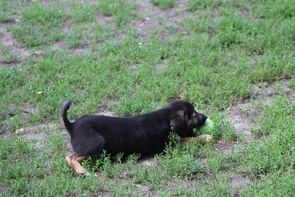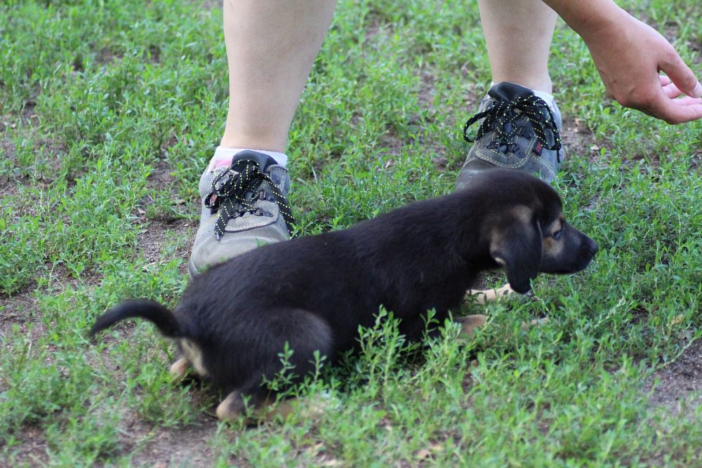 Pies około 2,5 miesięczny, mieszaniec, przywieziony 24 lipca 2018 z Gminy Czarnków. Nie wiemy jaki duży będzie bo nie znamy rodziców. Pies jest po pierwszym szczepieniu, odrobaczeniach i odpchleniu. Adoptując psa należy liczyć się z kosztami kolejnych szczepień przeciwko chorobom zakaźnym, obowiązkowemu szczepieniu p/ wściekliźnie, zakupie karmy dla szczeniąt, regularnym odrobaczaniom i odpchleniem. Psy do adopcji będą od 1 sierpnia.