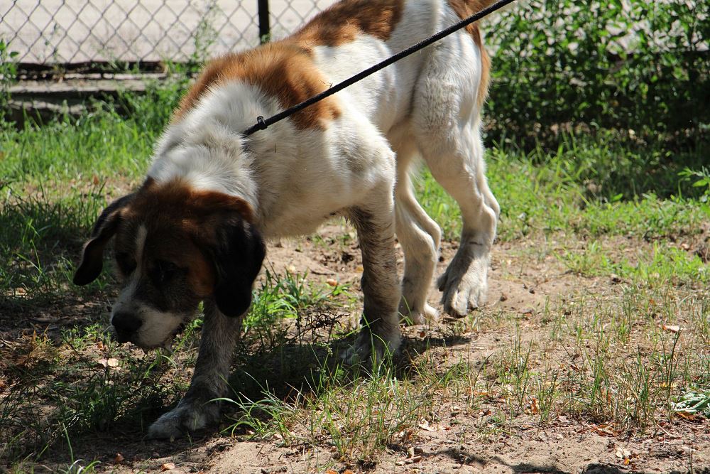 Pies w typie bernardyna odłowiony dziś w gminie Czarnków z Gajewa . Jest zadbany - był dobrym psem stróżującym. Ma około 4-5 lat.