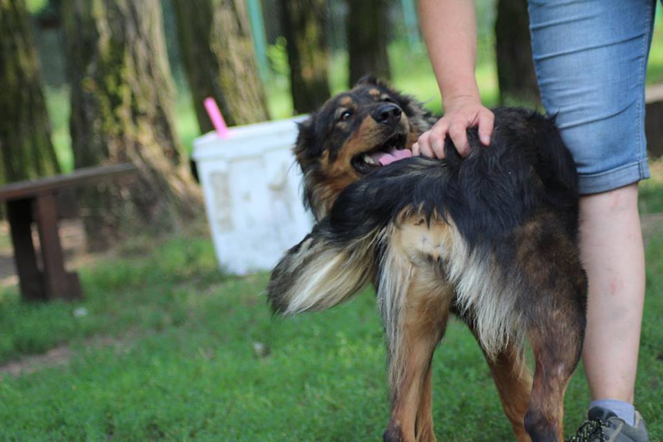 Suczka odłowiona 29 czerwca w Objezierzu w gminie Oborniki wraz z Trixi- przypuszczamy, że to matka z córką. Sunia jest młoda ma około 2 lat, nauczona chodzenia na smyczy, przyjazna i poddańcza do innych psów, aby zaufać człowiekowi obcemu potrzebny jest jej czas.
