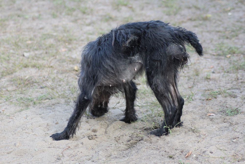 Suczka przywieziona 27 września z Jędrzejewa w gminie Czarnków. Ma ok 7 lat, jest bardzo zaniedbana, waży 7,5 kg.