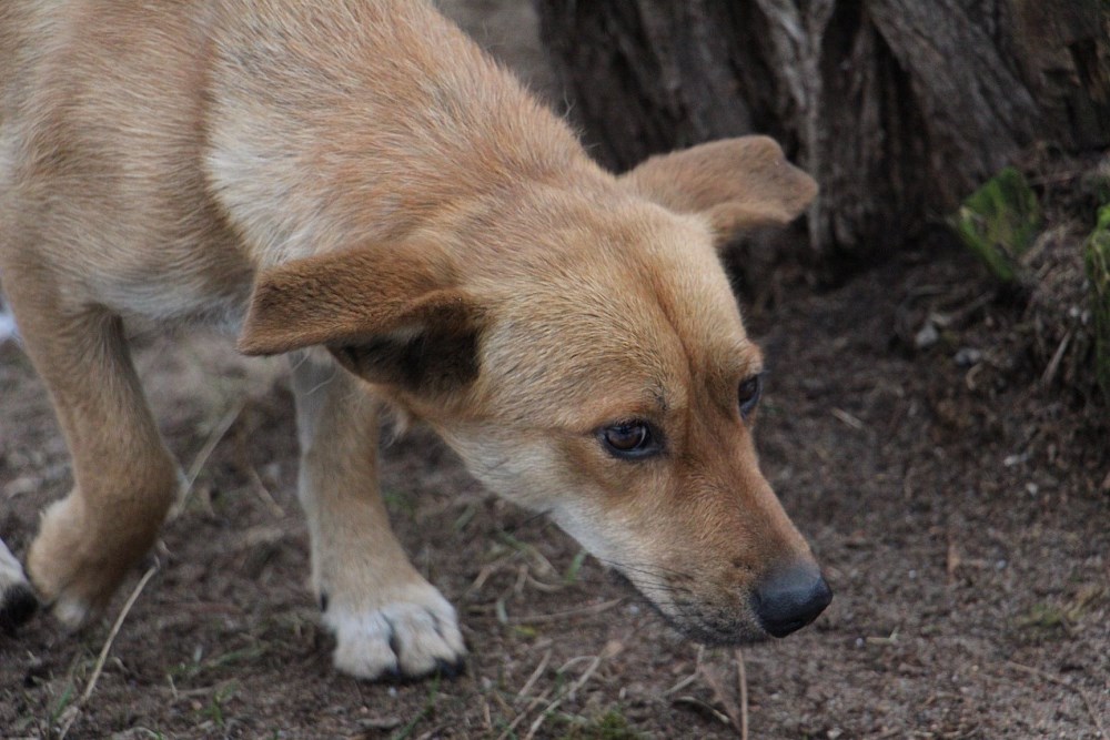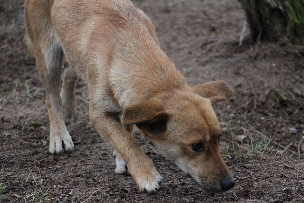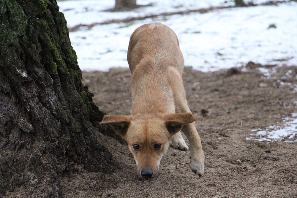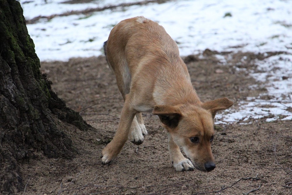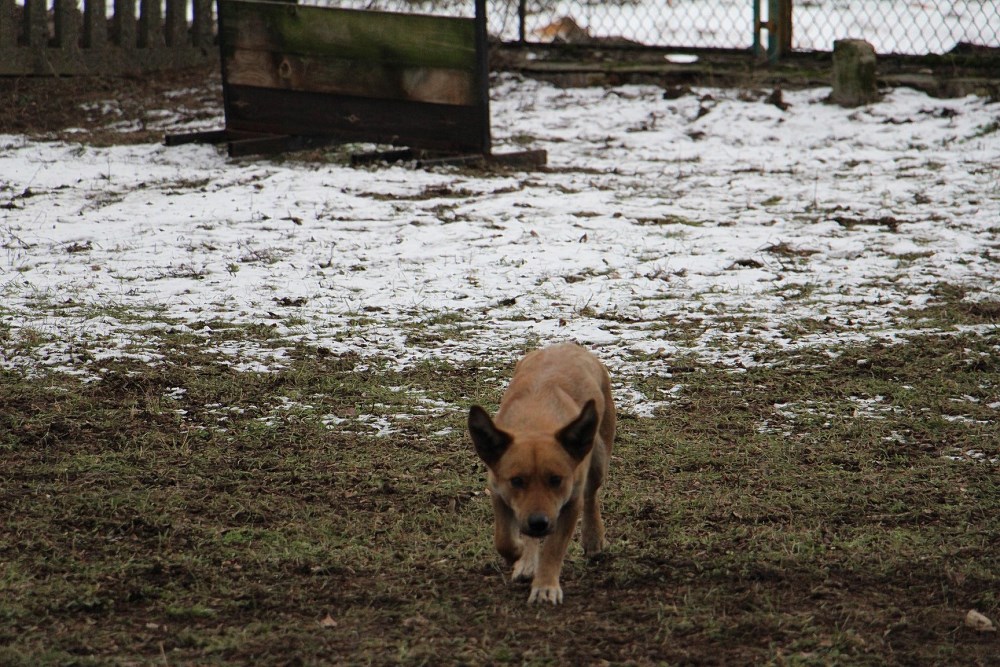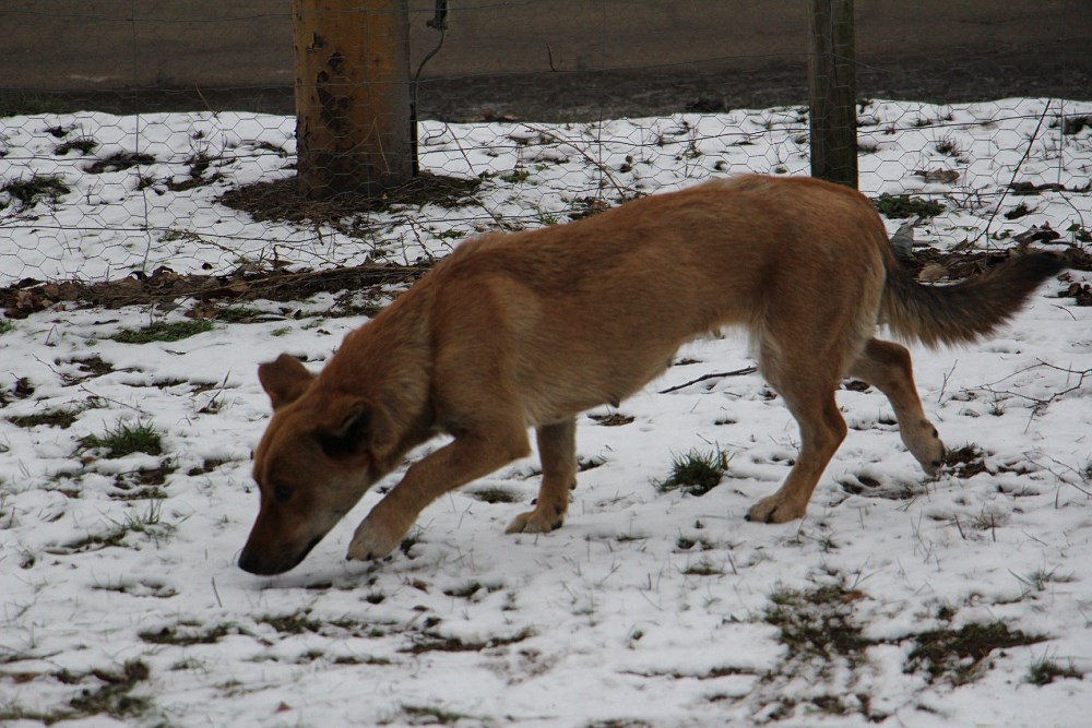 Suczka przywieziona 5 lutego z gminy Rogoźno z Parkowa, ma ukończony rok, bliznę na kręgosłupie, jest lękliwa.