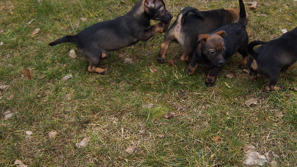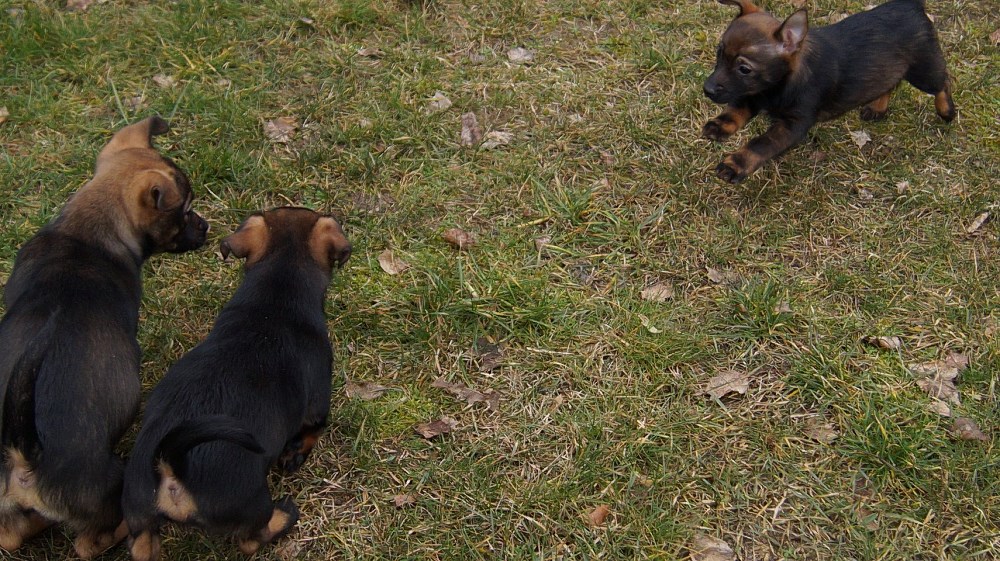 Szczeniaki to dwie dziewczynki i jeden chłopiec.