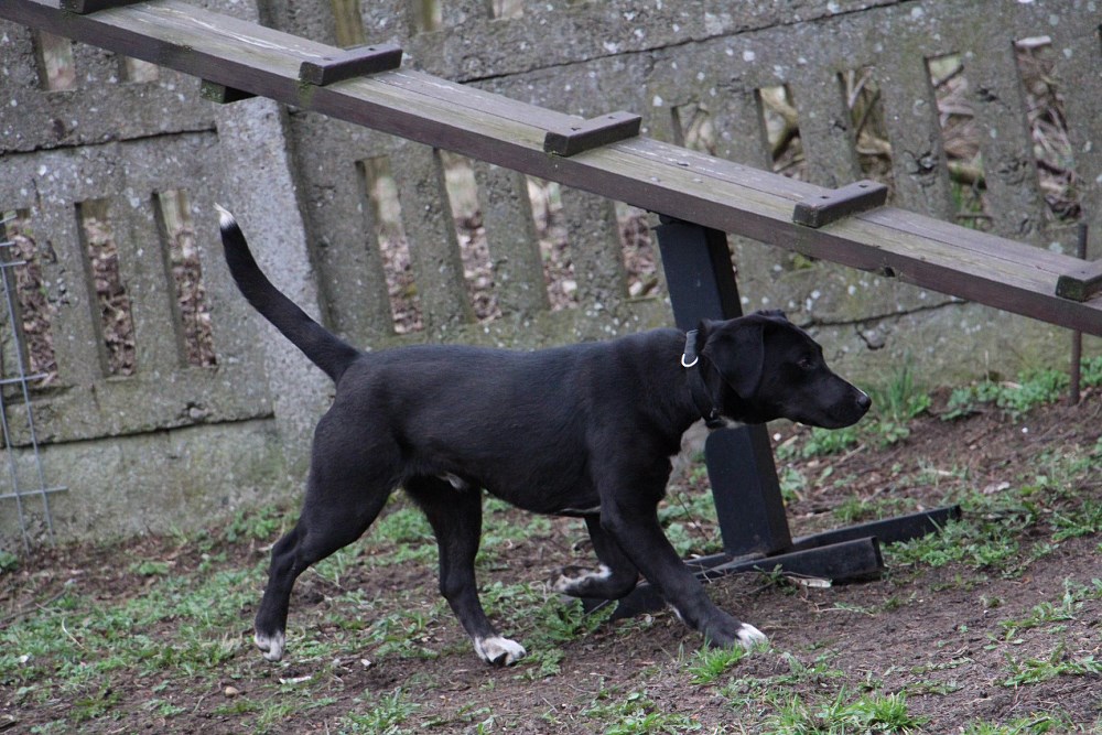 Pies około 6-8 miesięczny pełen energii. Przywieziony do schroniska 1 marca 2019 z gminy Murowana Goślina. Pies jest w typie mniejszego labradora, wymaga stanowczej osoby. Dom bez dzieci.