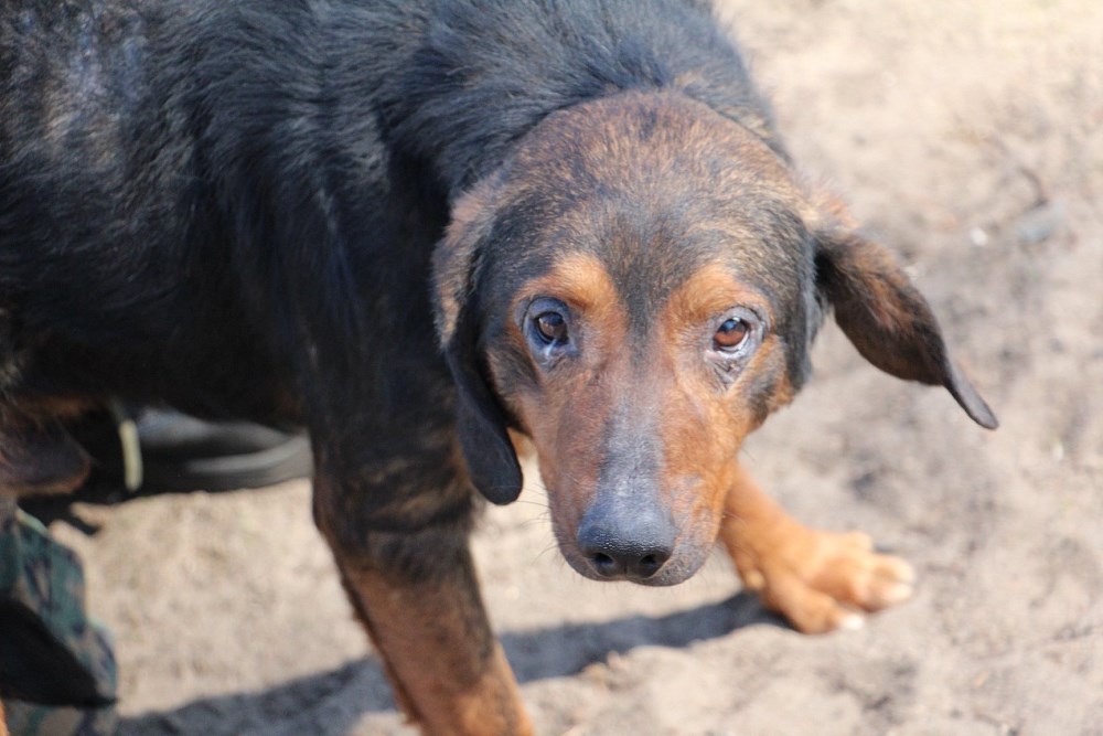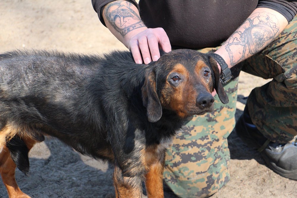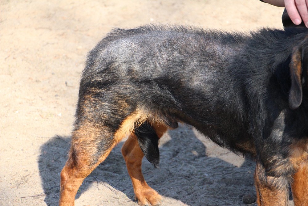 Pies z gminy Czarnków odłowiony 25 marca. ma około 3 lat. Został zaniedbany ale jest już w trakcie leczenia- jednak aby odrosły włosy to jest dłuższy proces. Jest bardzo grzeczny, podchodzi z rezerwą do człowieka ale do znajomej osoby już podchodzi.