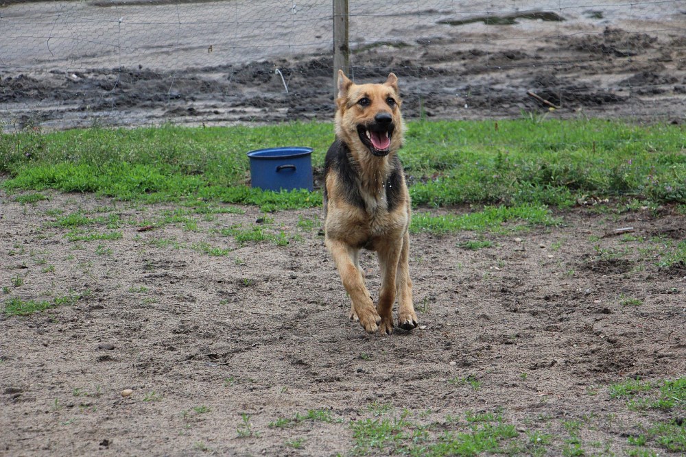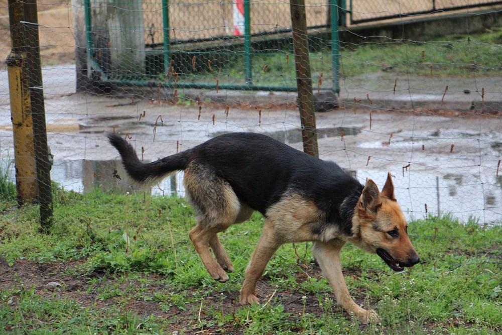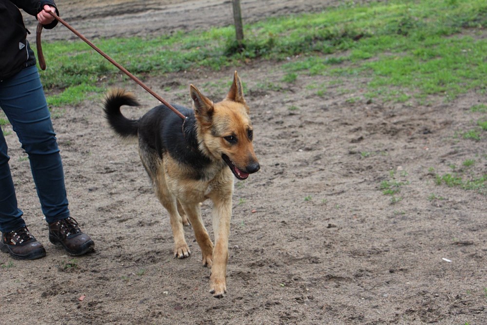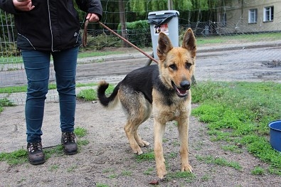 Suczka ON przywieziona 10 maja z gminy Czarnków. Ma około 2 lat, umie chodzić na smyczy, interesuje ją mocno otocznie jest przygotowywana do adopcji.