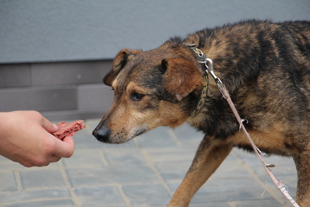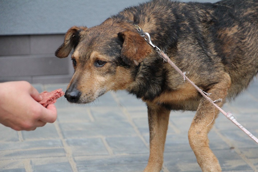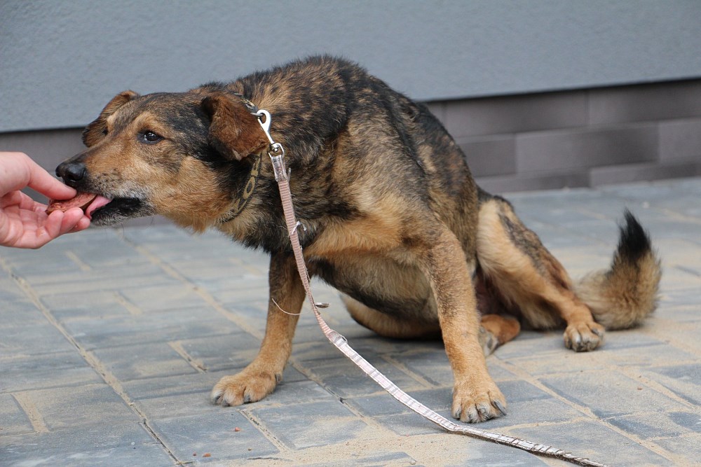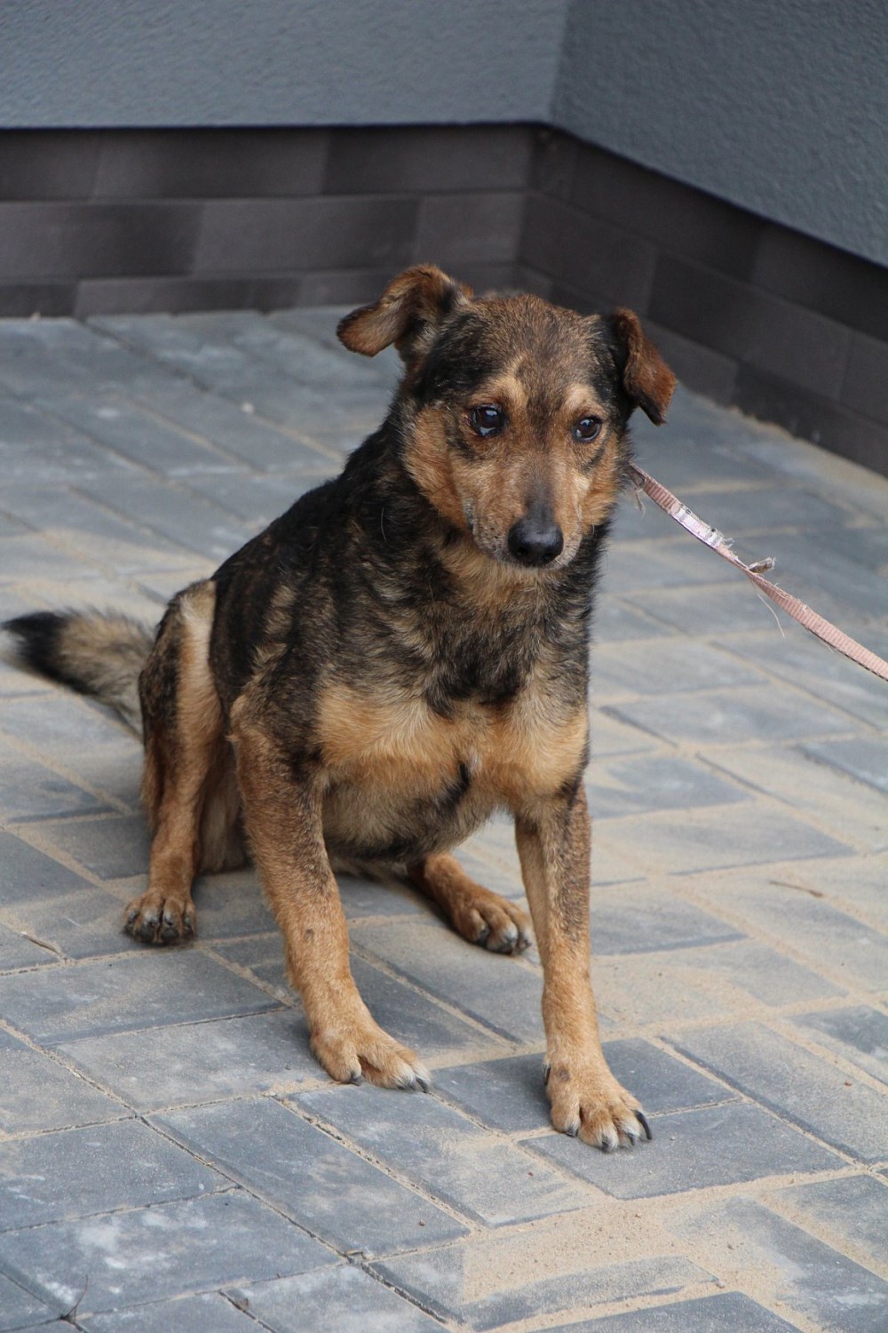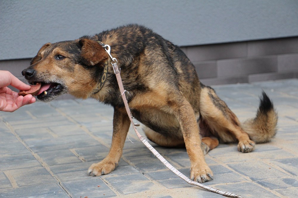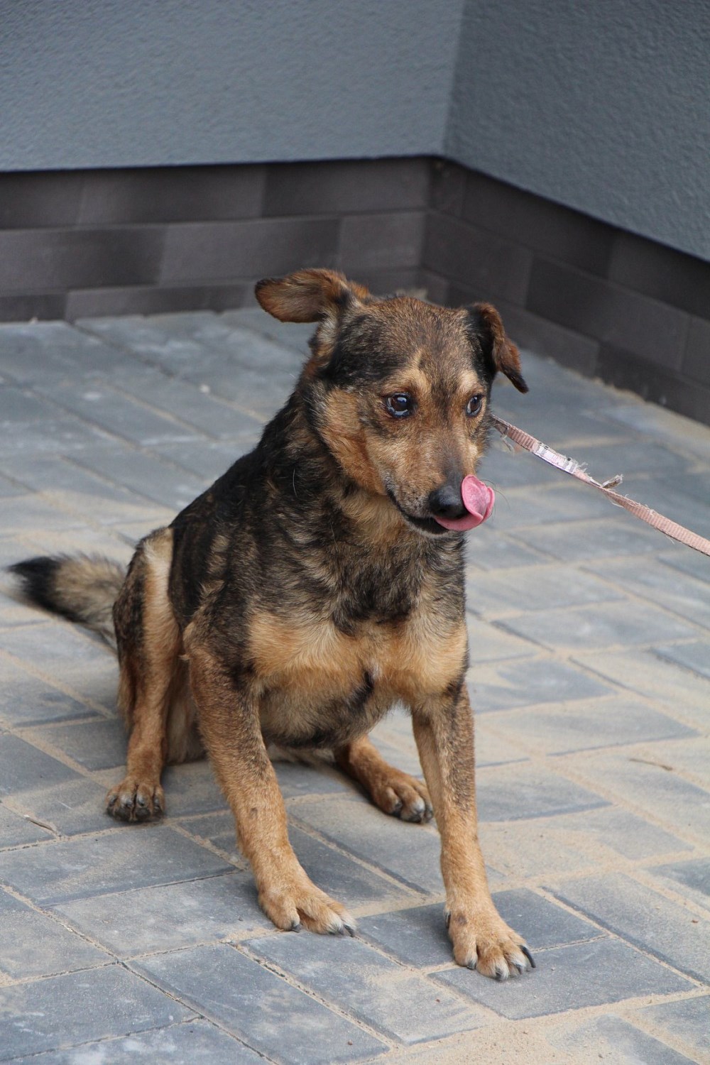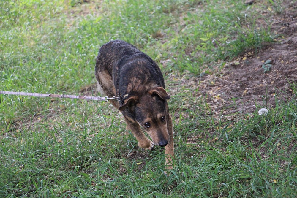 Pies odłowiony 3 stycznie 2019 w gminie Ryczywół. Pies był zdziczały i nie pozwolił nic przy sobie zrobić. Praca powoli przynosi efekty. Co widać na zdjęciu. Pies miał skończone 10 lat i biega z innymi psami na wybiegu. Chodzi na smyczy- nie w sposób pokazowy, uczony jest na smakołyki.