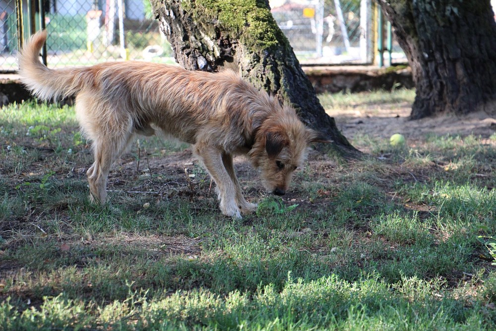 Pies przywieziony 5 sierpnia 2019 z Ninina gmina Ryczywół, ma wytarte pod szyją- czyli był trzymany na uwięzi, ma około 2-3 lat. Spokojny względem ludzi. Chętny do zabawy.