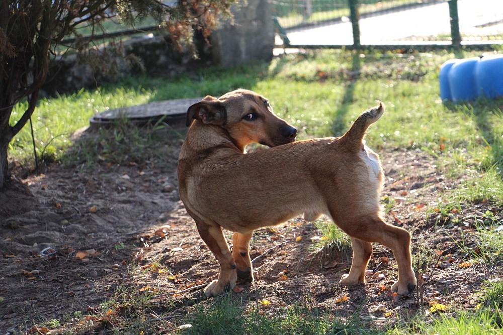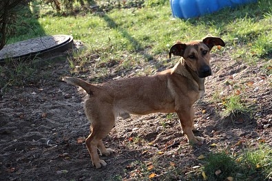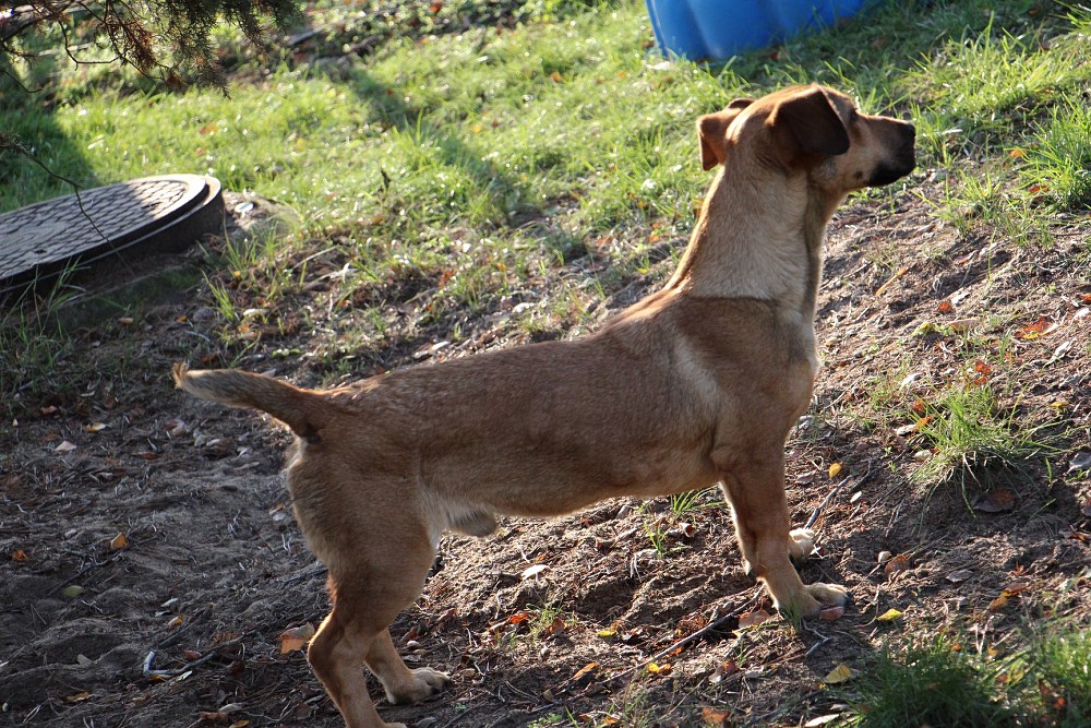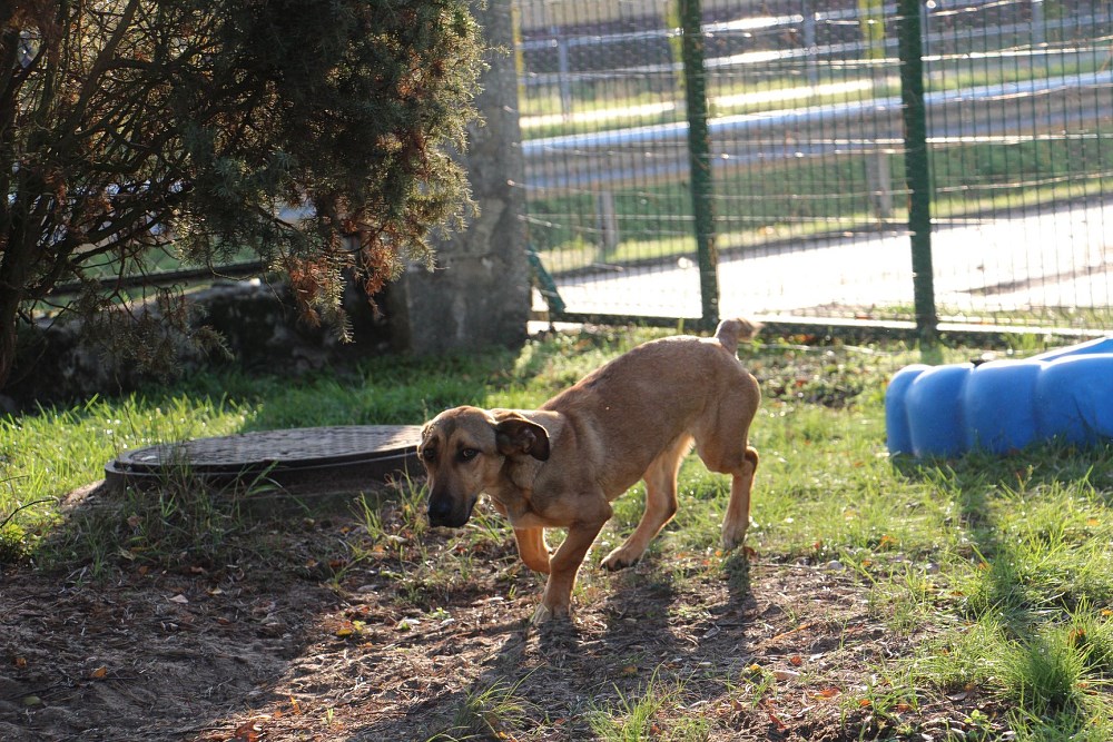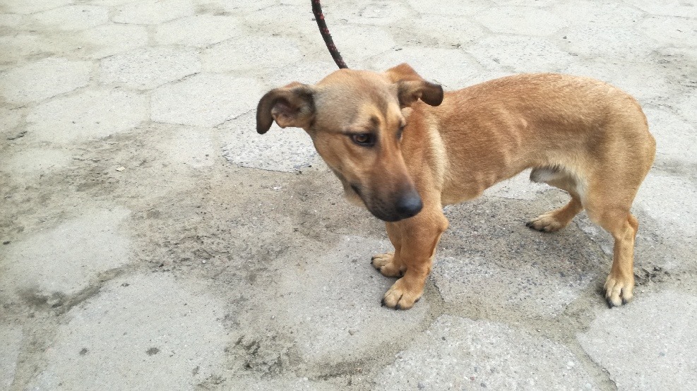 Pies przywieziony 30 października z Krzyszkowa z gminy Rokietnica. Jest bardzo szczupły, przemiły i spokojny. Jest psem młodym około rok do półtora