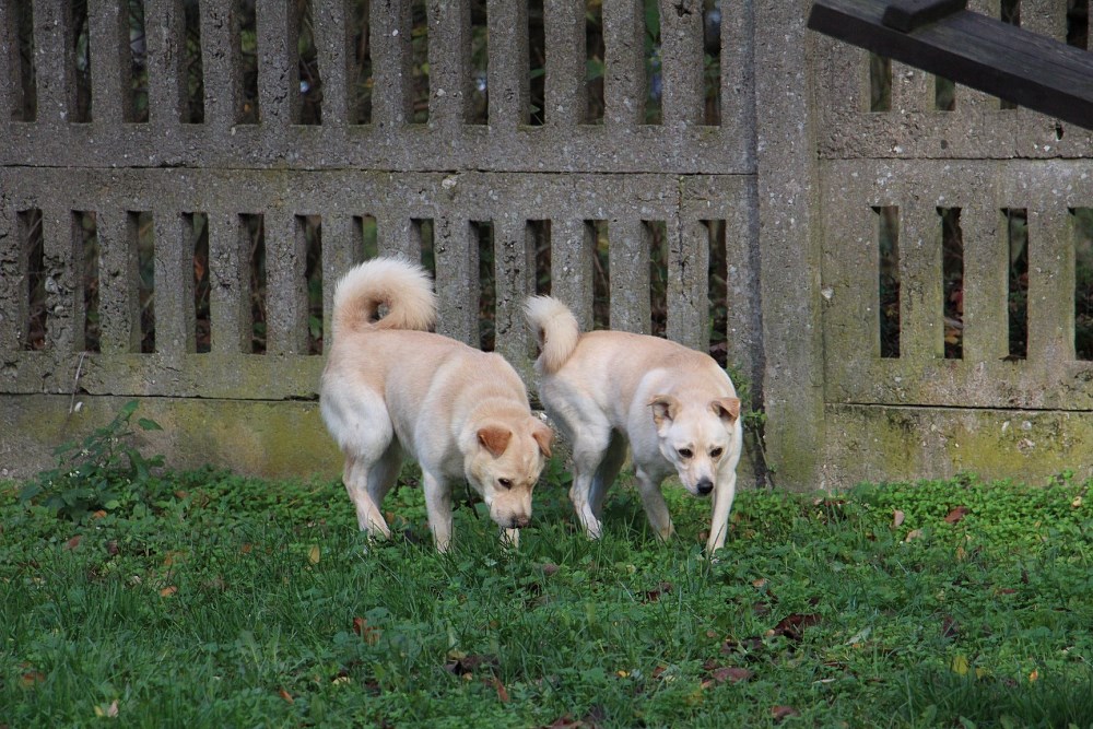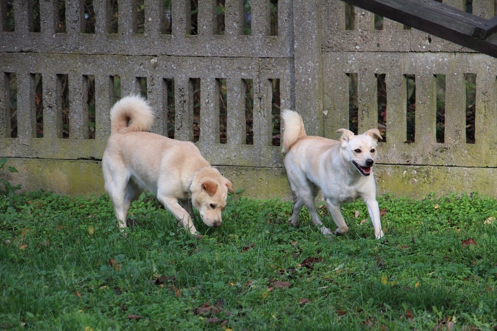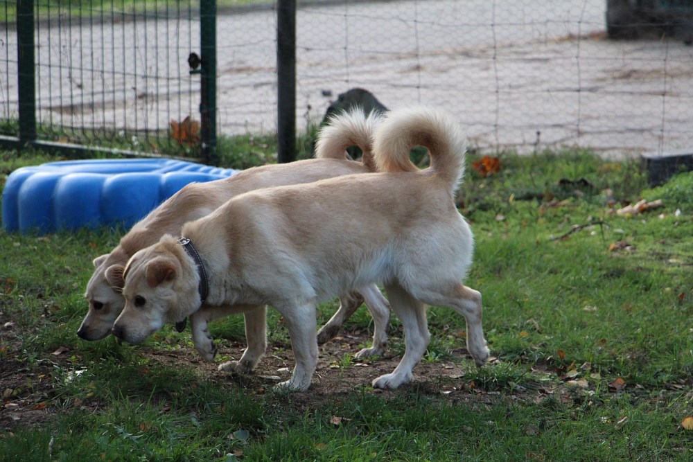 Suczki przywiezione z gminy Rogoźno 28 października. Gabrysia ma około 10 lat a jej córka - Misia około 6. Chodzą na smyczy, są łagodne dla ludzi, dla psów. Żyły w kojcu na dworze. Misia jest szalona i energiczna, Gabrysia jest bardziej stateczna:)
