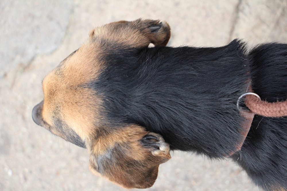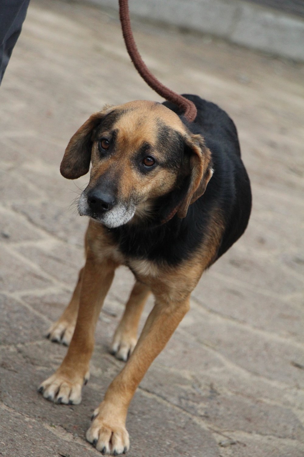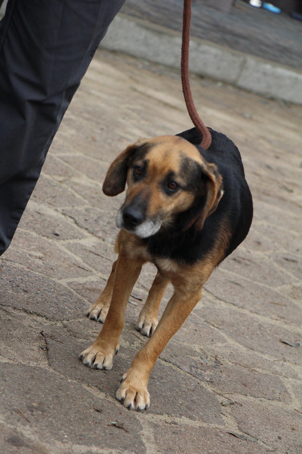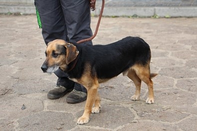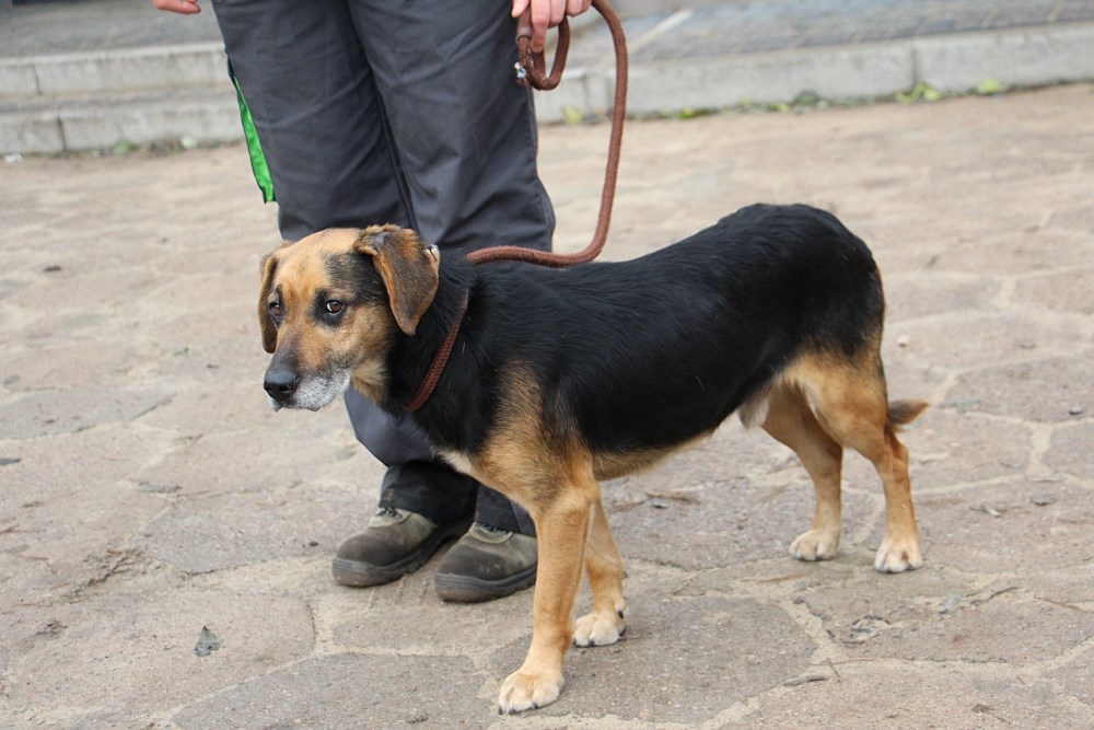 Pies, mieszaniec przywieziony z Jaracza w gminie Rogoźno 18 listopada, ma charakterystyczne nacięte uszy dawno temu.