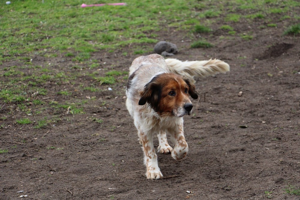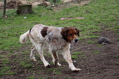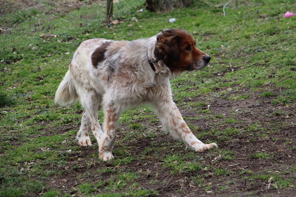 Pies przywieziony 30 stycznia z gminy Rogoźno. Ma około 7 lat, był odebrany ze złych warunków. Musi przyjmować suplementy diety na wątrobę i nerki. Jest łagodny i spokojny.