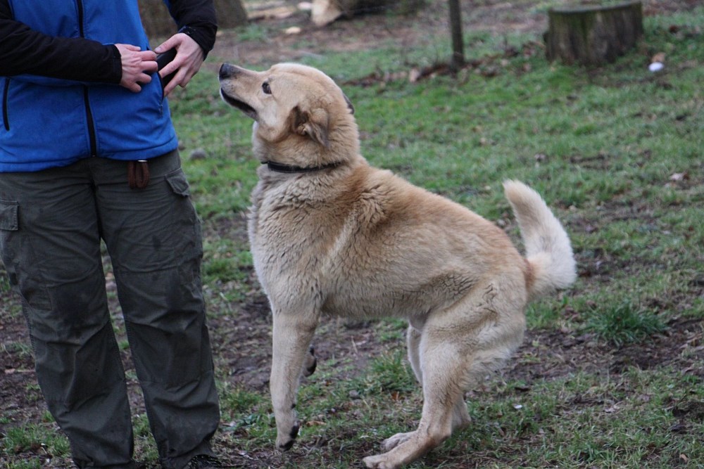 Pies przywieziony z gminy Grodzisk Wielkopolski znaleziony w Sowidowie. Przywieziony 14 lutego. Ma ok. 6 lat. Ginger jest energiczny i przyjacielski. Ładnie chodzi na smyczy, uwielbia biegać, być głaskany. Ginger to wielki, puchaty, uśmiechnięty misiek. Zachęcamy do adopcji psiaka.