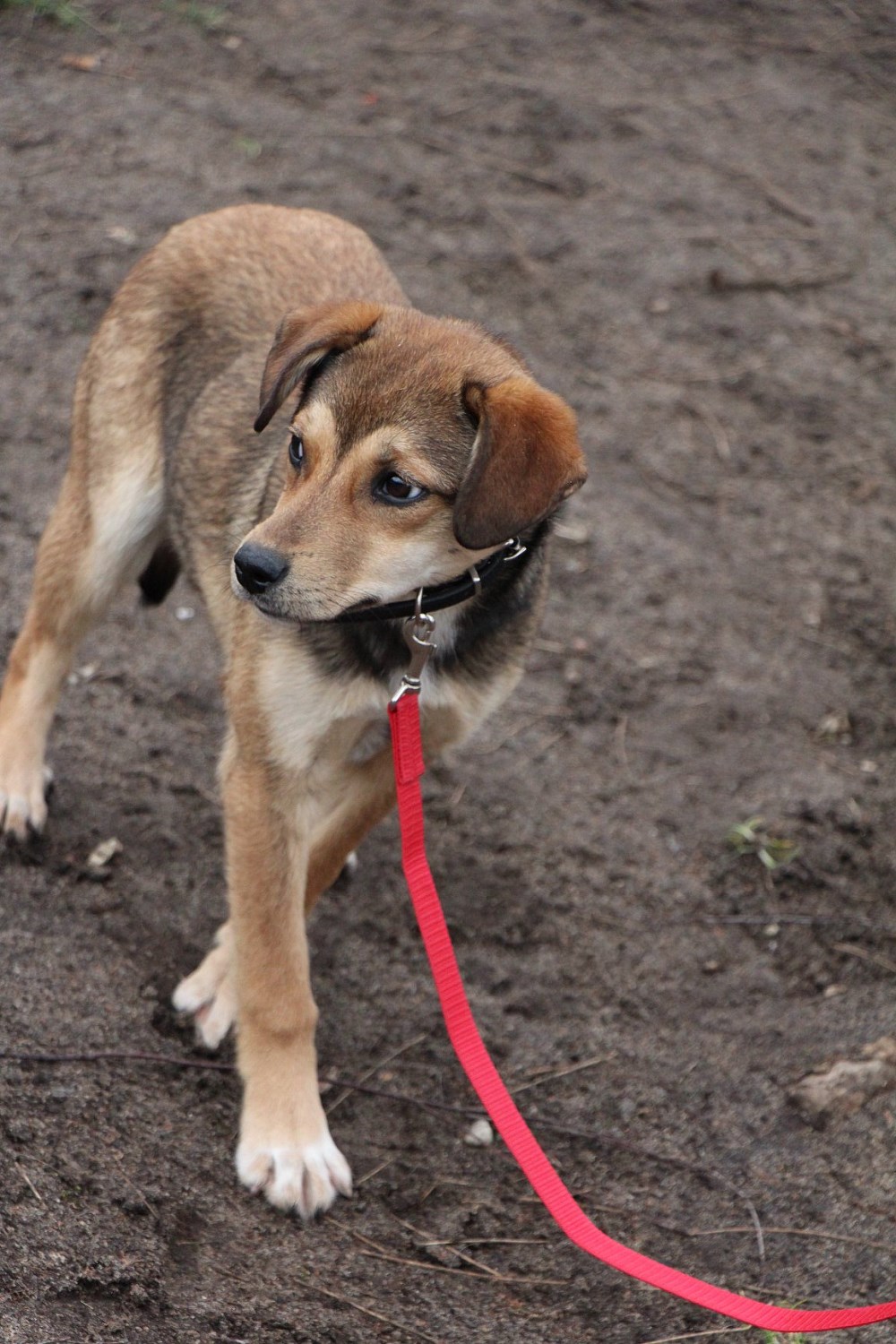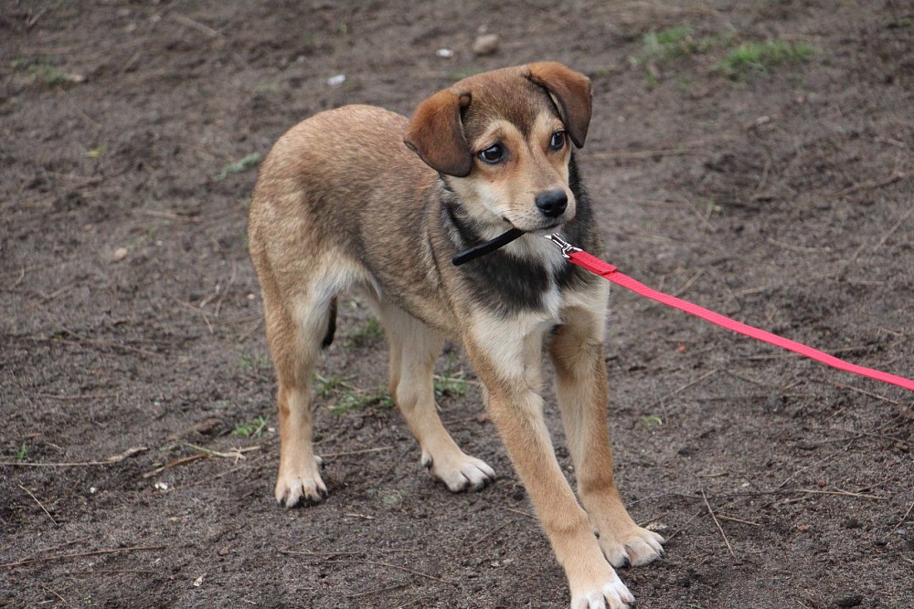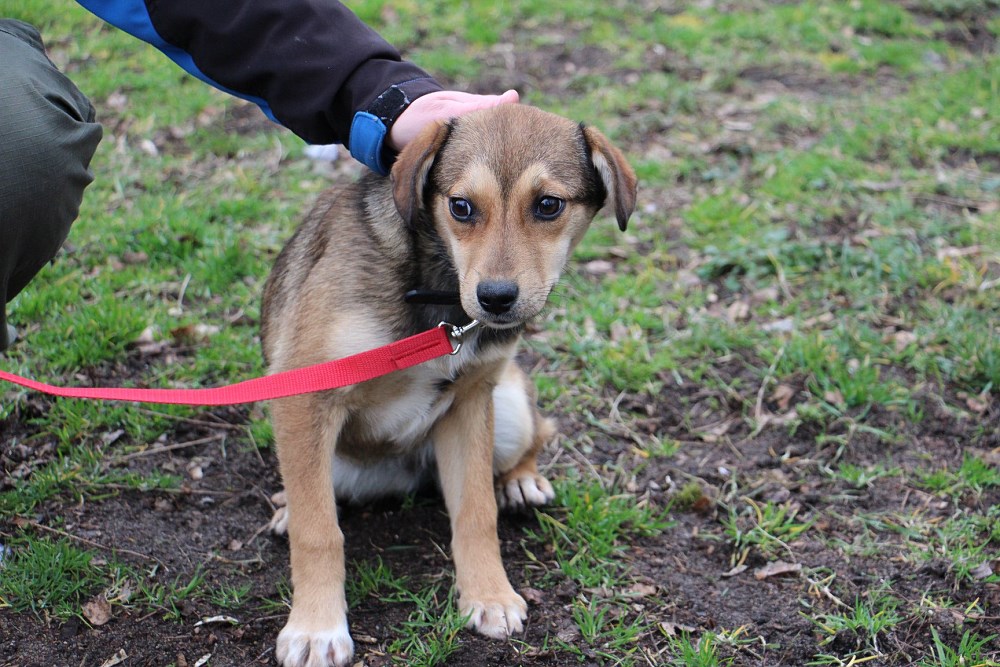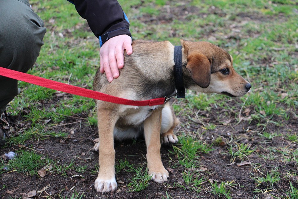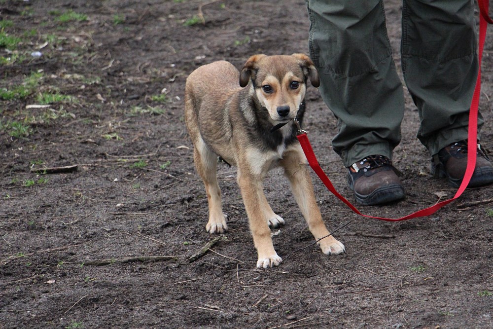 Suczka odłowiona 26 lutego w gminie Rogoźno. Sunia ma około 6 miesięcy i jest zdziczała. Powoli nad nią pracujemy.