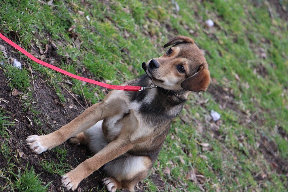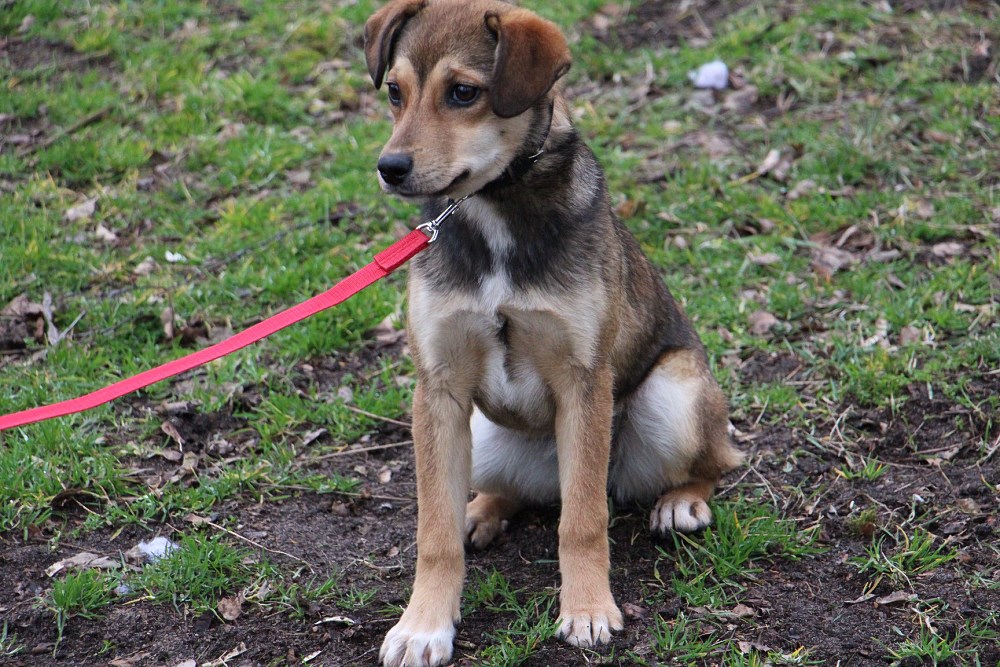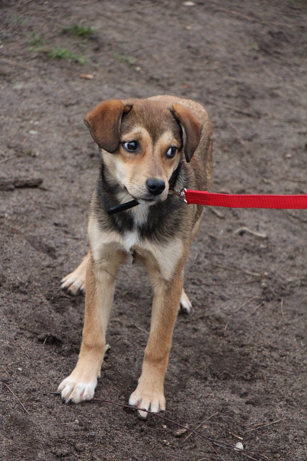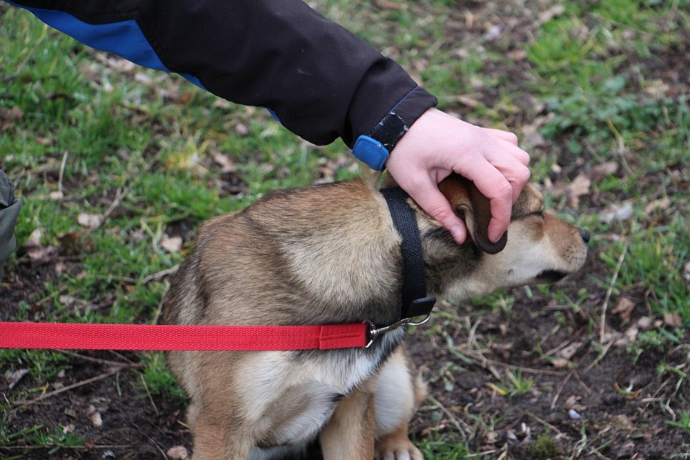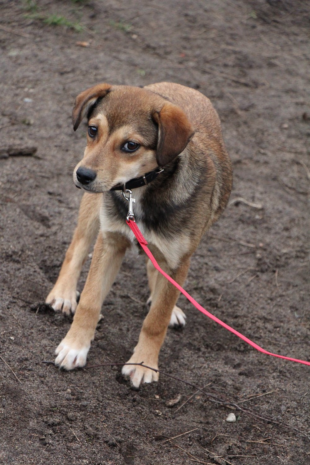 Suczka odłowiona 26 lutego w gminie Rogoźno. Sunia ma około 6 miesięcy i jest zdziczała. Powoli nad nią pracujemy.