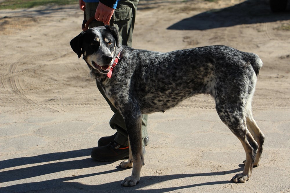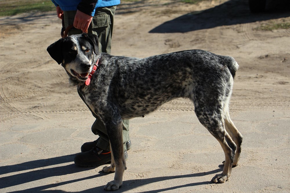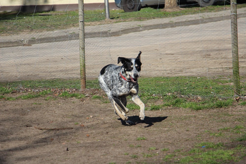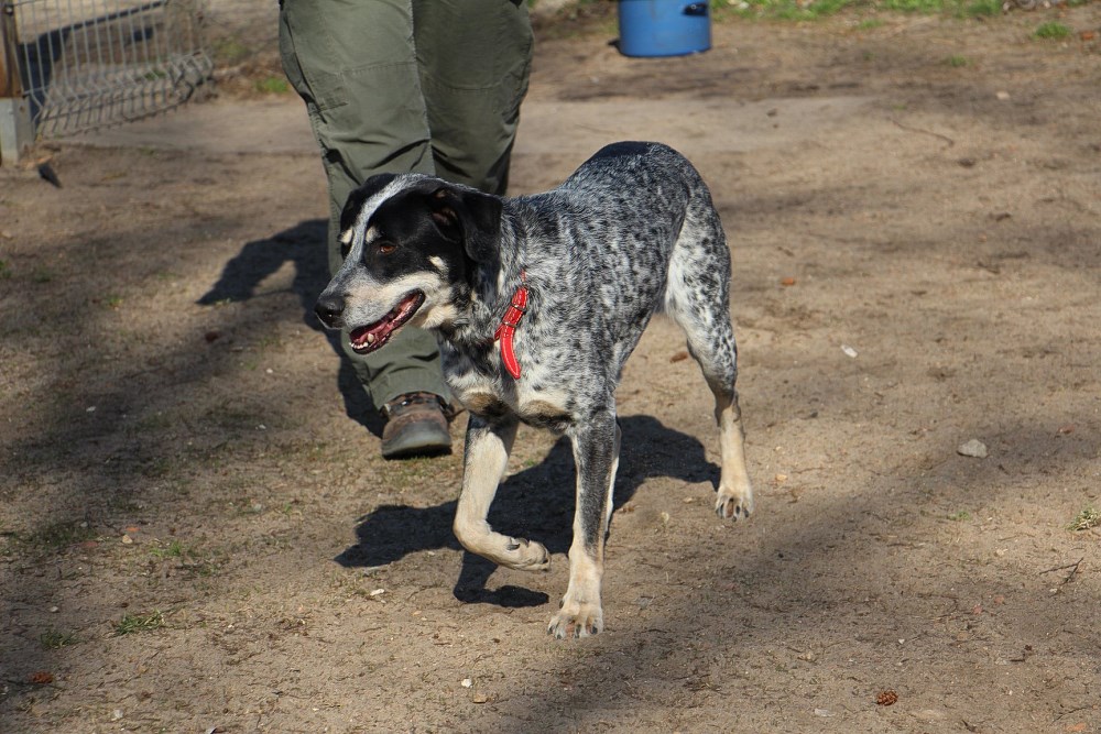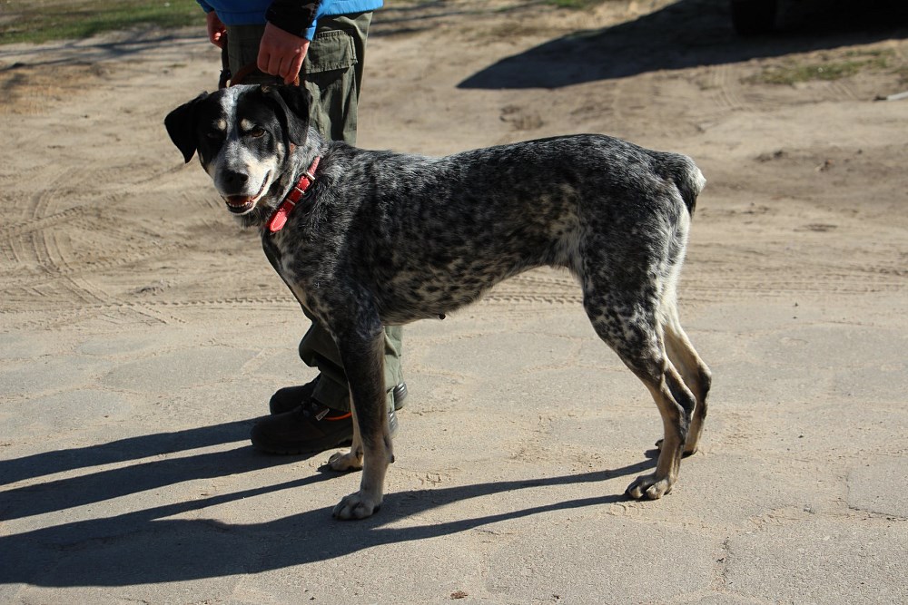 Saga, mieszaniec ma ok. 3 lat. Przyjechała do schroniska po dwóch nieudanych adopcjach 24 marca z gminy Grodzisk Wielkopolski. Saga jest dużym, mocnym psem. Jest bardzo grzeczna względem ludzi, pięknie chodzi na smyczy, zna podstawowe komendy, utrzymuje czystość. Saga potrzebuje zdecydowanego i wymagającego opiekuna. Doskonale wyczuwa, na ile może sobie pozwolić przy danej osobie i potrafi to wykorzystać. Saga dobrze funkcjonuje przy jasno określonych zasadach. Saga łatwo pobudza się przy szybko poruszających się obiektach np: rowerzyści, rolkarze, małe psy, zaczyna wówczas szczekać i rzuca się w pogoń. Suczka ma zapędy myśliwskie. Przed adopcją obowiązują spacery zapoznawcze.