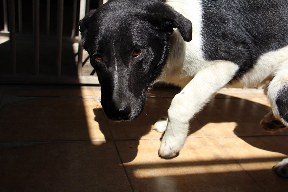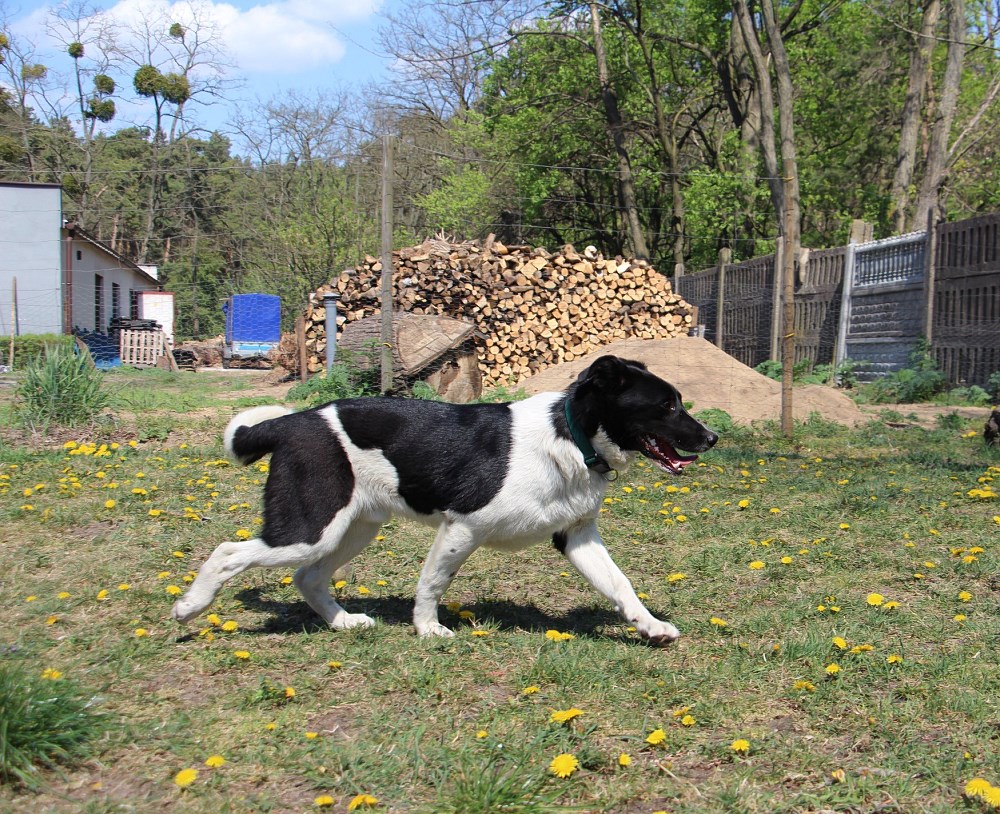 Felek, pies ok. 1 roku, przyjechał 20 kwietnia 2020 r. wraz z rodzeństwem z Budziszewka, gmina Rogoźno. Łagodny, bardzo grzeczny pies. Musiał zaplątać się w jakiś drut, bo ma uraz łapy, który leczymy. Najbardziej ufny i spokojny z rodzeństwa.