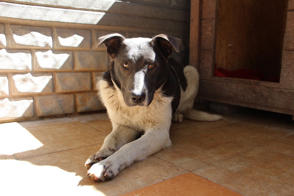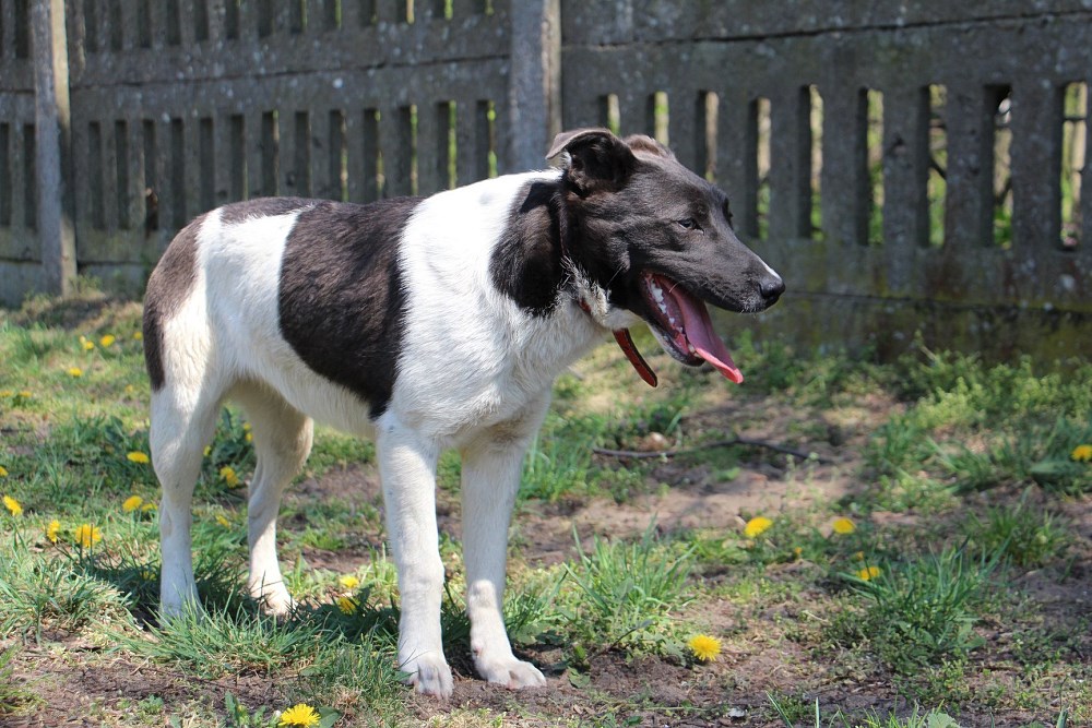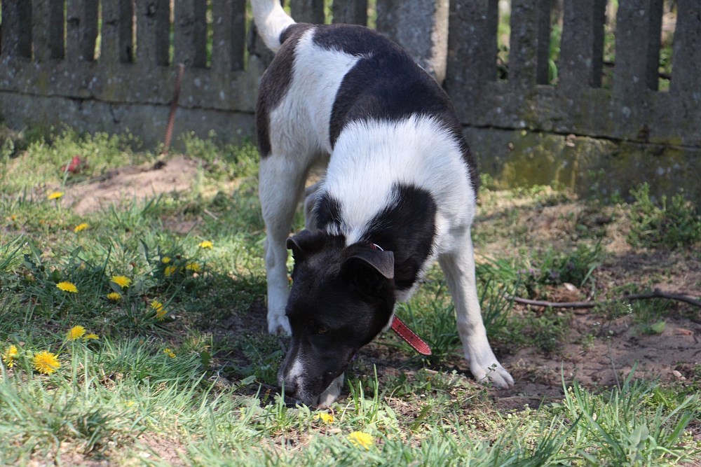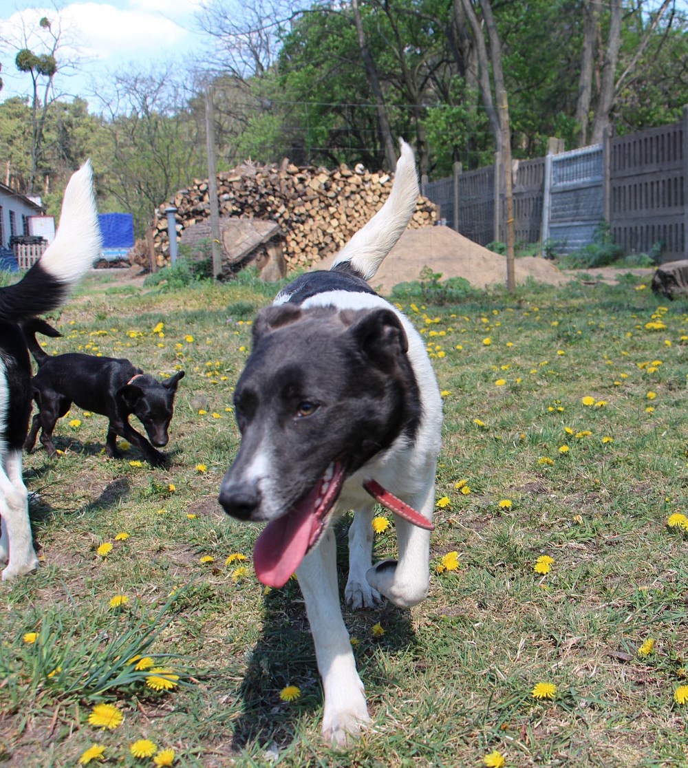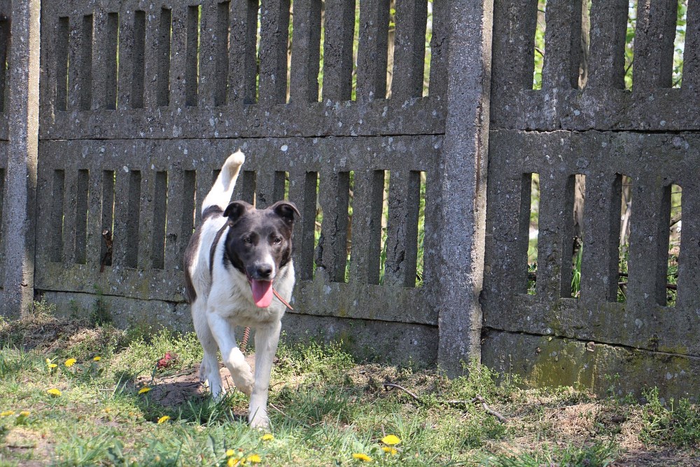 Fela, suczka ok. 1 roku, przyjechała 20 kwietnia 2020 r. wraz z rodzeństwem z Budziszewka, gmina Rogoźno. Fela ma piękne umaszczenie biała w ciemno-brązowe łaty. Fela bardzo lgnie do człowieka. Potrafi za swoim opiekunem przejść przez płot. Łagodna wobec psów i ludzi.