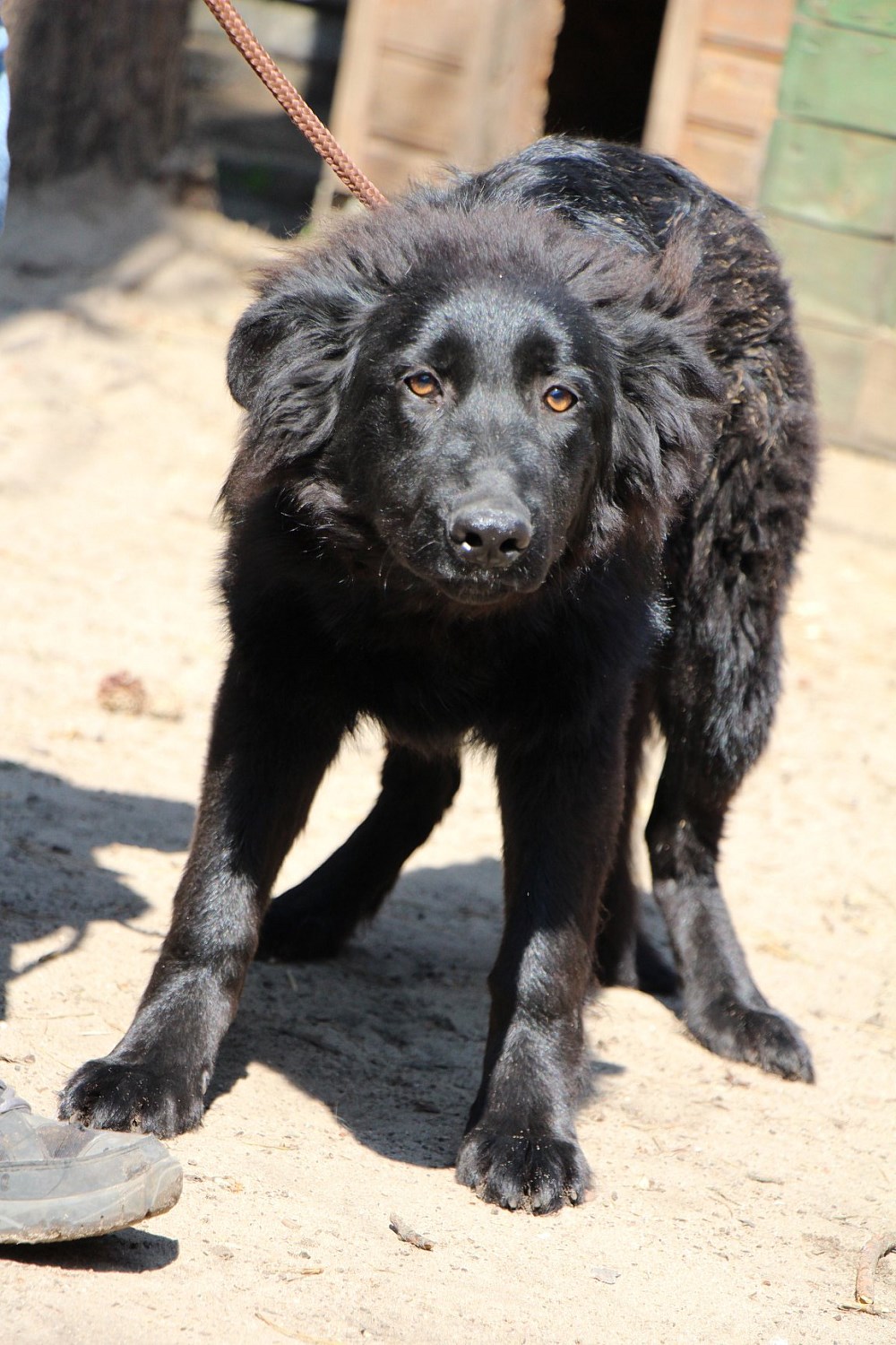Suczka -młodzik wręcz, przywieziona z Murowanej Gośliny 6 maja 2020, jest przestraszona nowym miejscem, nie umie chodzić na smyczy, przyzwyczaja się powoli do opiekunów