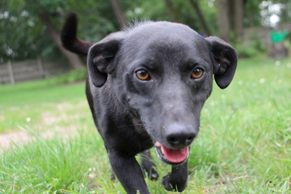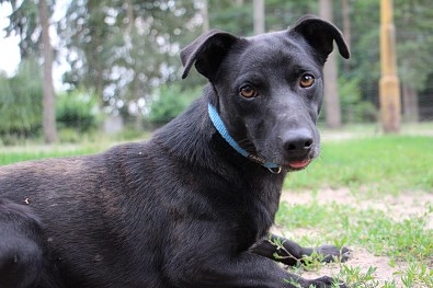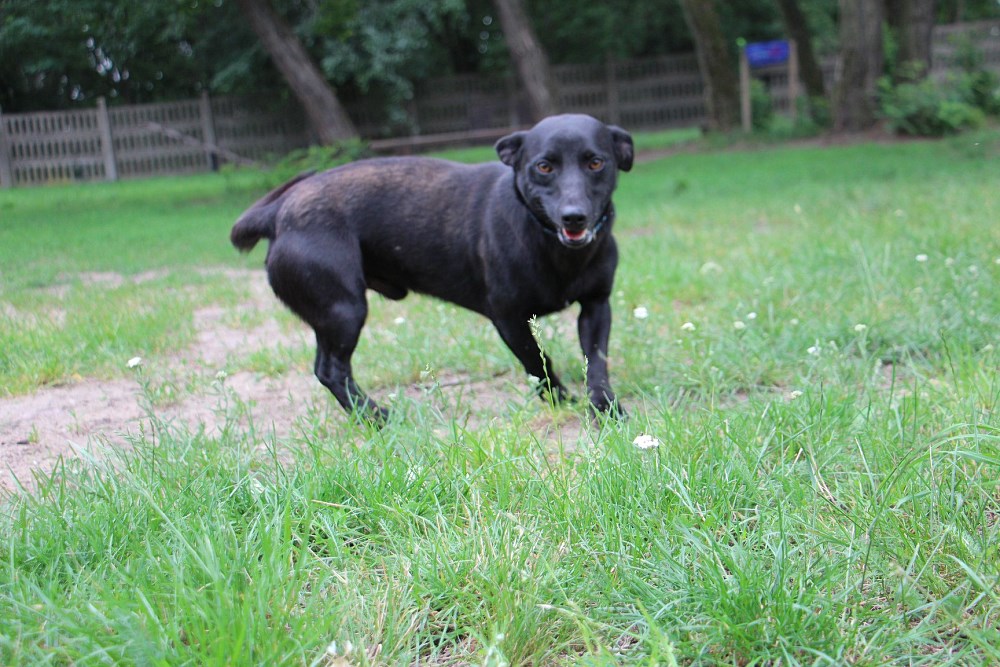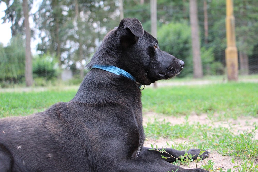 Pies około 1,5 roczny przywieziony 26 czerwca 2020 r. z gminy Kamieniec. Smok ładnie chodzi na smyczy. Bardzo garnie się do człowieka, uwielbia głaskanie, pcha się na kolana. Woli towarzystwo człowieka niż psów. Jest grzeczny wobec innych psów, ale nie jest nimi zainteresowany, domaga się jedynie uwagi opiekuna.