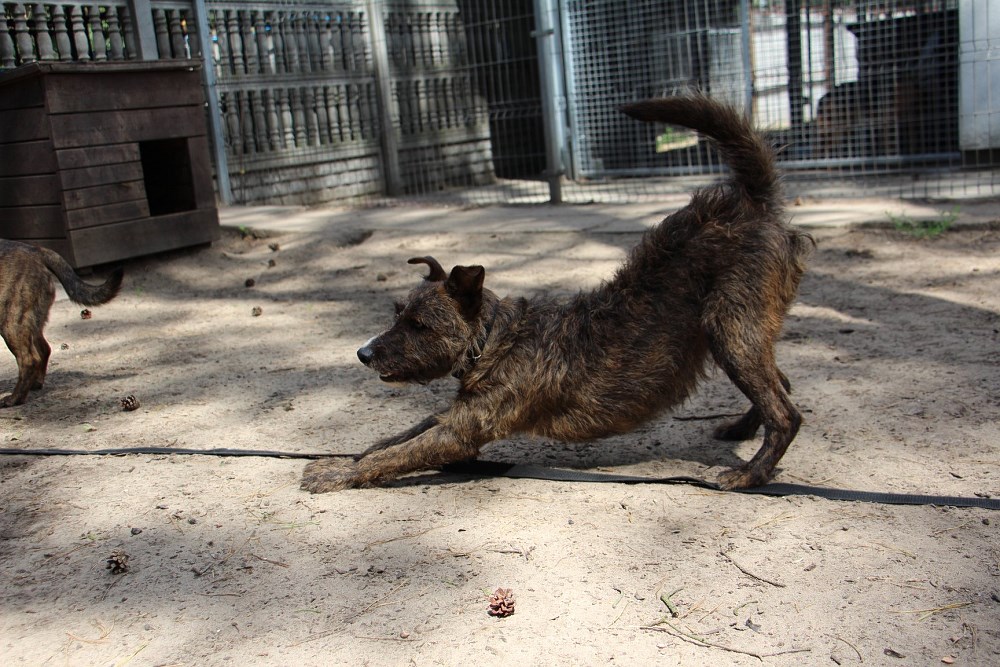 Alik wrócił z adopcji 22 czerwca 2020 r. Dwa lata temu pies trafił do schroniska z gminy Murowana Goślina jako szczeniak i szybko został adoptowany. Obecnie ma 2,5 roku. Alik mieszkał w domu, utrzymuje czystość, potrafi chodzić na smyczy, jest bardzo przyjazny dla ludzi. Zgadza się z psami, choć obawia się psów dominujących i agresywnych, a czasem sam próbuje ustawiać słabsze psiaki. Alik jest młodym psem, który bardzo potrzebuje kontaktu z człowiekiem.
