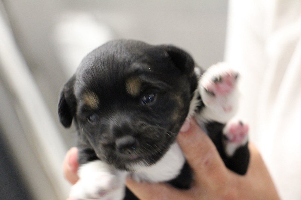 Suczka, szczeniak przywieziona 10 lipca z Usia, ma 14 dni życia. Pierwsze szczepienie będzie miała gdy skończy 6 tygodni. Dopiero po szczepieniach będzie do adopcji gdy nabierze odporności. Nie rezerwujemy psów!!