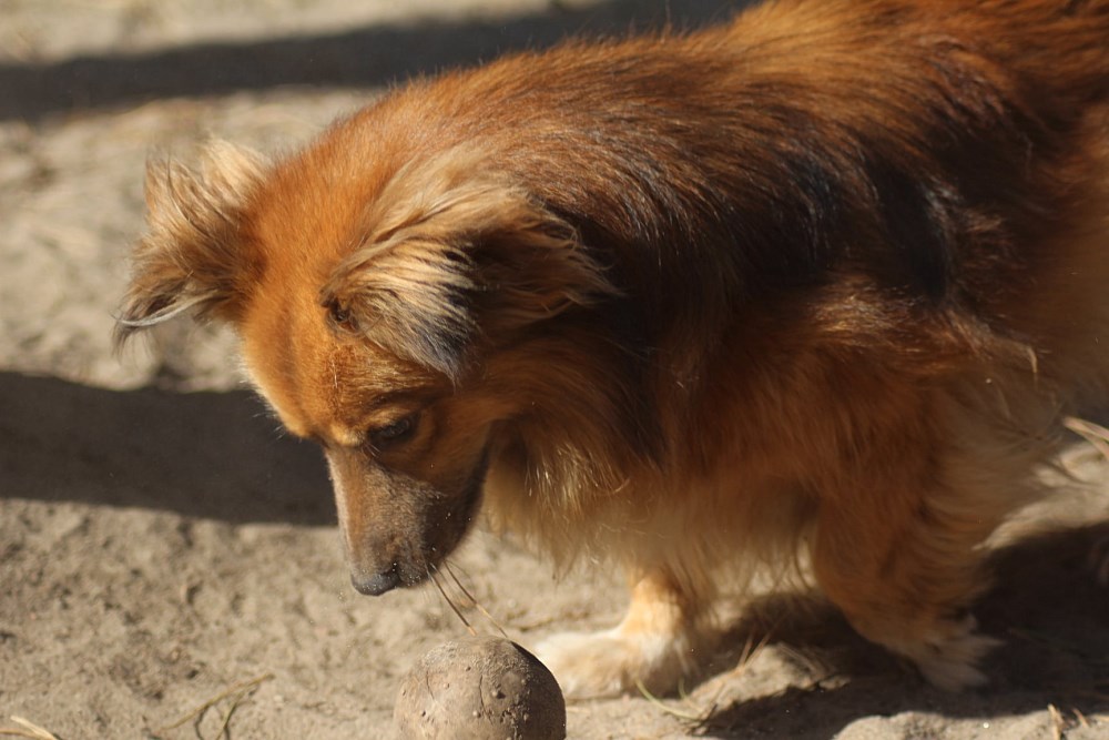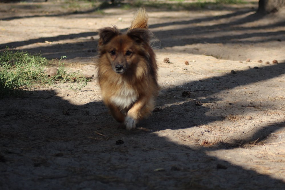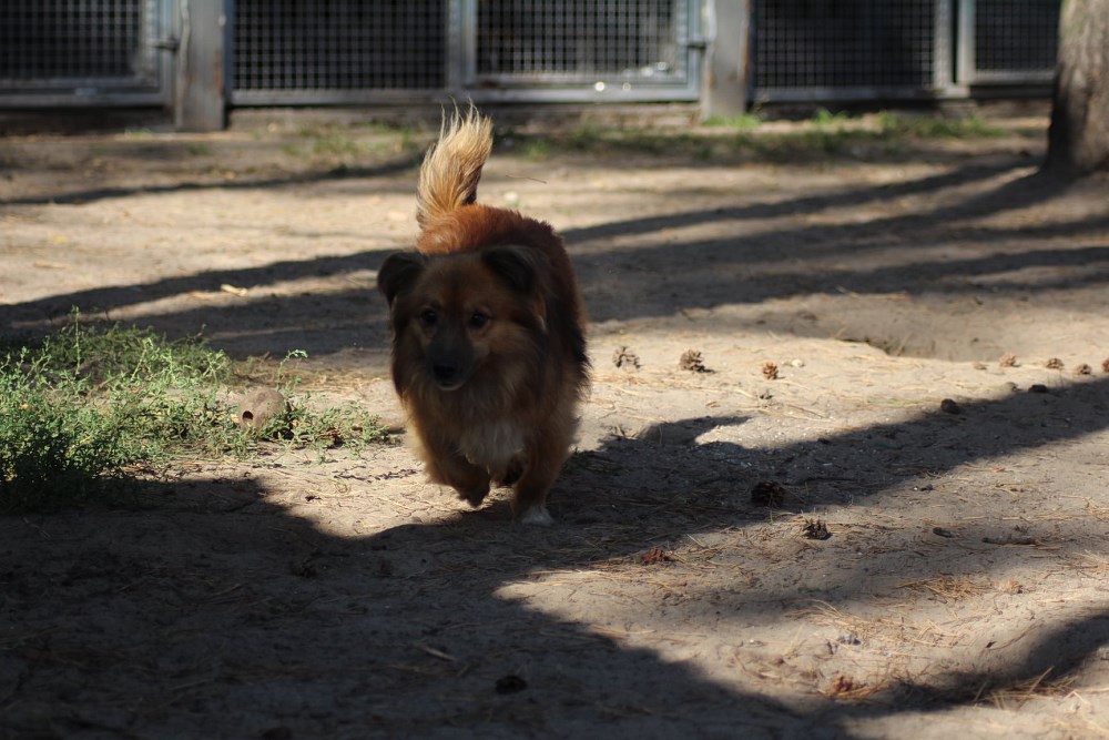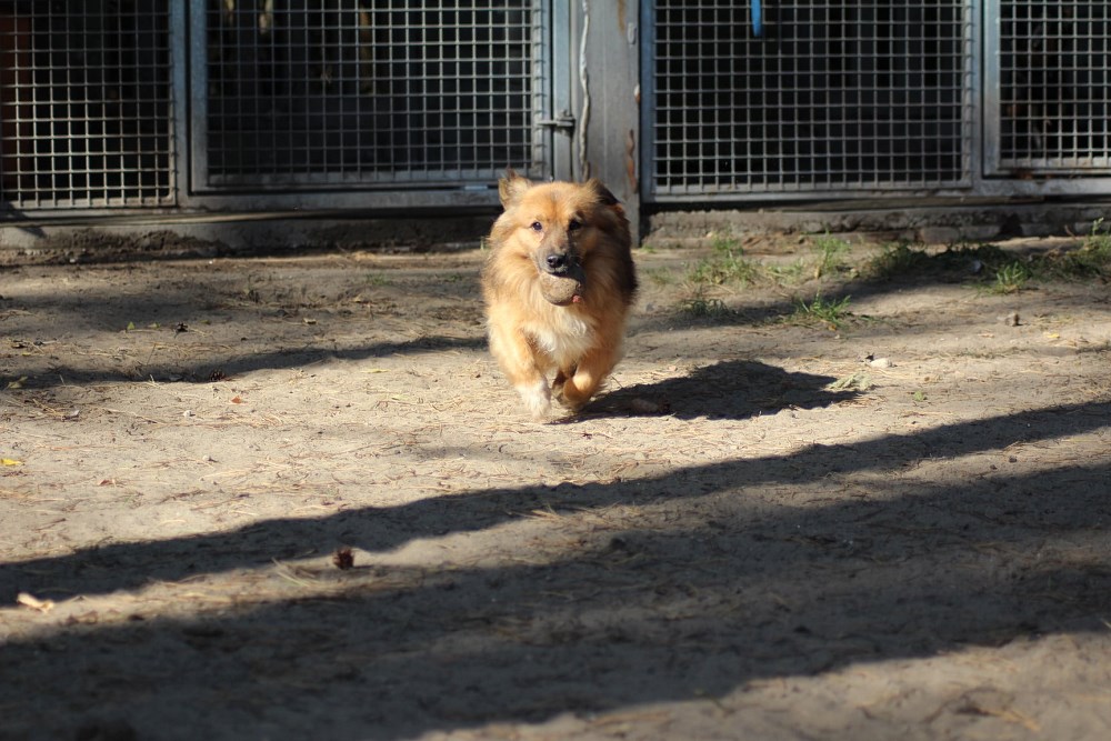 Pies przywieziony 19 września 2020 r. z Rudek, gmina Oborniki. Mesi ma ok. 5 lat. Świetnie aportuje, piłkarz na krótkich nóżkach. Nie potrafi chodzić na smyczy. Jest bardzo przyjazny dla ludzi. Zgadza się z innymi psami.