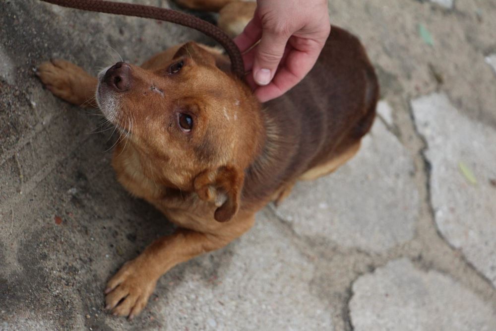 Pies przywieziony 14 października 2020 r. z Ninina w gminie Ryczywół. Miał ogrom pcheł. Nie zna smyczy. Ostrożny i zdystansowany do cżłowieka. Ma około 3 lat. Ponoć biegał po Nininie około 3-4 tygodni.