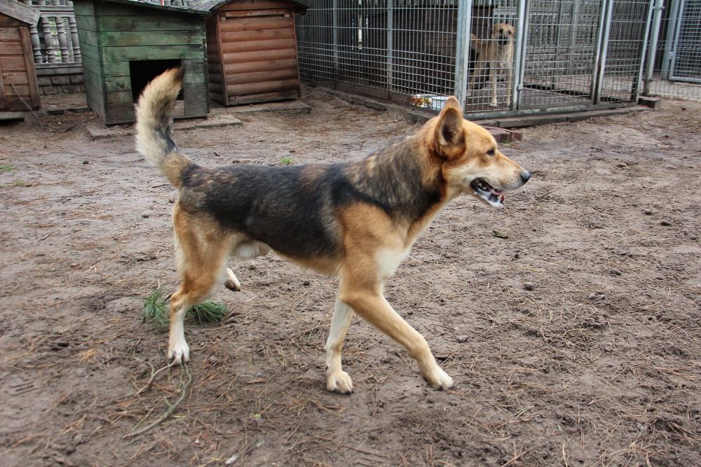 Pies przywieziony 22 października z Dąbrówki Leśnej w gminie Oborniki. Pies jest młody -max 2 lata, brak czipa. Dan jest bardzo przyjacielski. Zgadza się z psami, uwielbia kontakt z człowiekiem. Potrafi chodzić na smyczy.