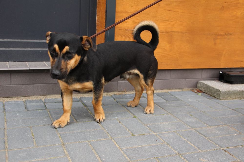 Pies biegał po ul. Sasankowej w Rokietnicy, przywieziony do schroniska 26 października 2020 r. Jest młody, zadbany. Miły dla ludzi, zgadza się z psami.