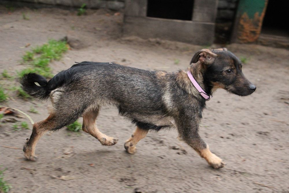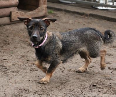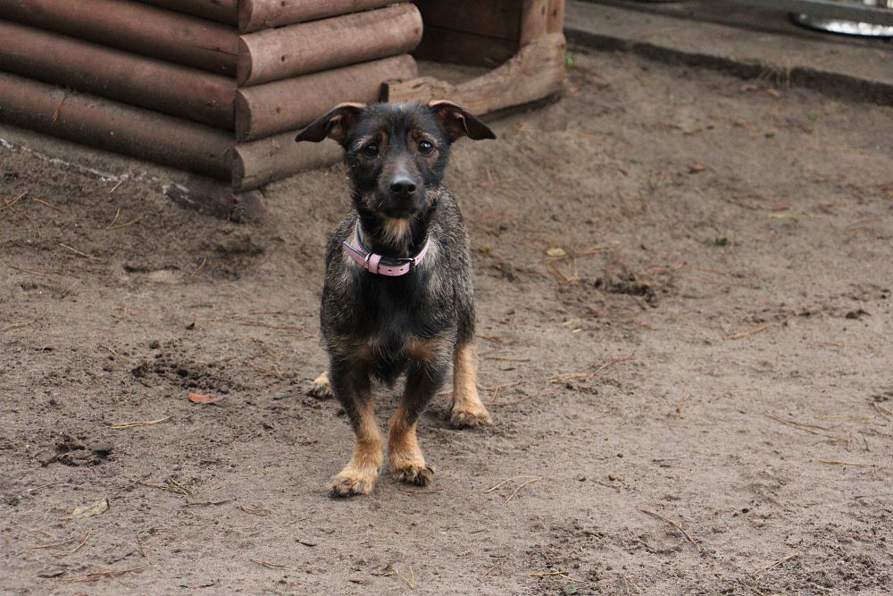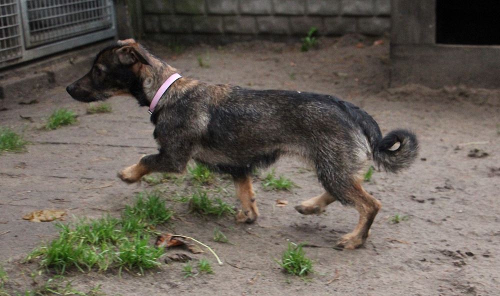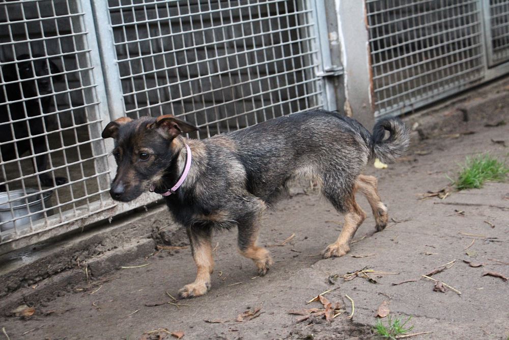 Suczka przywieziona 10 listopada z Mrowina, gmina Rokietnica. Ma ok 2 lat. Ma na sobie różową obroże widoczną na zdjęciu. Mrówa jest ciut nieśmiała. Kiepsko znosi schronisko.